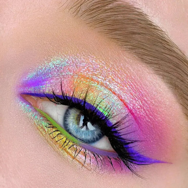 Met metallic accenten geef je je make-up een stralende, bijna holografische finish. Een scherpe chrome eyeliner zorgt voor een futuristische touch, terwijl chrome oogschaduw diepte en glans toevoegt aan je ooglook. Voor de echte Chromecore aesthetic zijn multi-chrome lippen een must: afhankelijk van de lichtval veranderen de tinten en geven ze een gedurfde, hypnotiserende uitstraling.