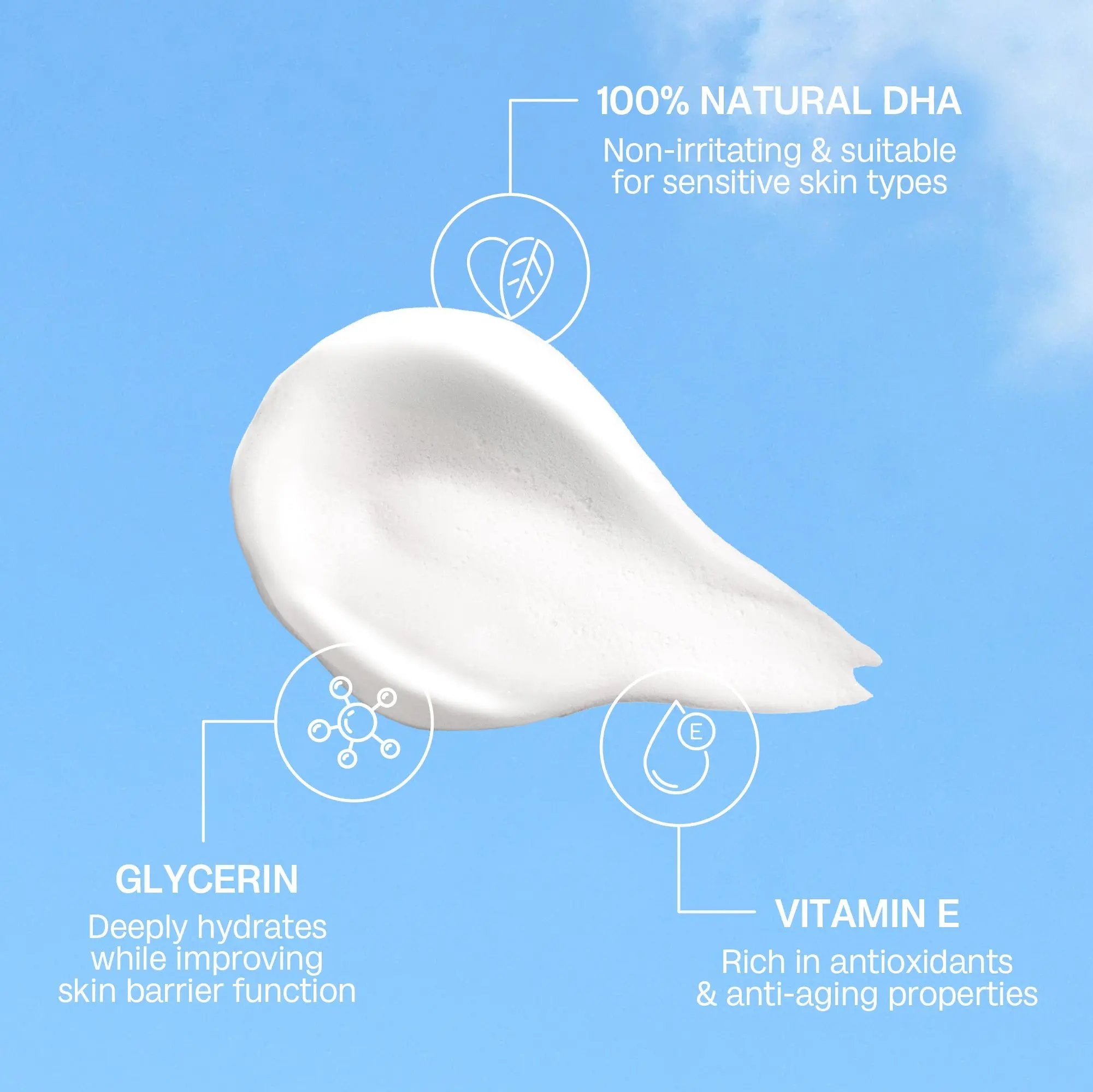 Met een unieke rinse-free formule hoef je ‘m niet uit te spoelen; aanbrengen en gaan! De blend van 100% natuurlijke DHA en huidverzorgende toppers zoals niacinamide, glycerin en vitamin E zorgt ervoor dat je huid niet alleen straalt, maar ook glad en gevoed aanvoelt. Geschikt voor alle huidtypes én zelfs de gevoelige huid, deze tanning mousse maakt zelfbruinen zó easy dat je je afvraagt hoe je ooit zonder kon.