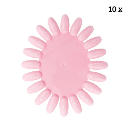 Het Boozyshop 10 pc. Nail Wheels Pink is een set met 10 multifunctionele kleurenwaaiers die je aan jouw nail stash moet toevoegen! Dit handige sjabloon is ideaal om al je kleuren te presteren en om nieuwe nail art uit te proberen. Een echte musthave voor elke nail lover!