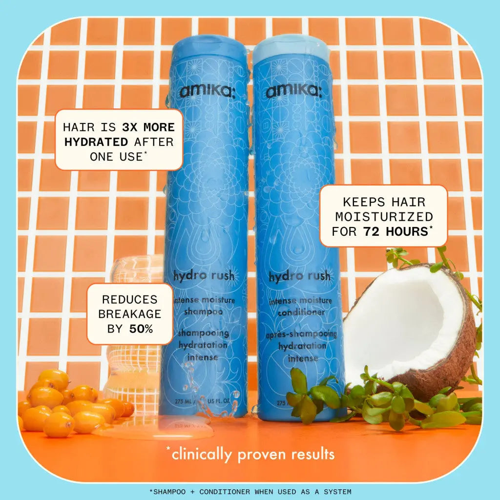 De Amika Hydro Rush Intense Moisture Conditioner is de ultieme oplossing voor intensieve hydratatie en verzorging van droog, getextureerd of grof haar. Deze krachtige conditioner is drie keer effectiever dan andere hydraterende conditioners, dankzij de combinatie van hyaluronzuur en squalaan, die het haar diepgaand voeden en het vochtgehalte weer in balans brengen.
