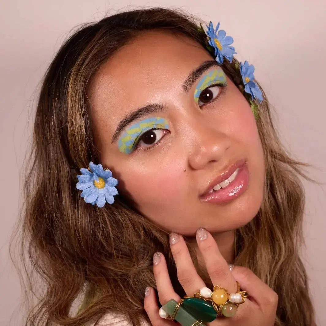 De Astrobabe Shadow Tatt Lucid Dreaming is als een droom op je oogleden, met een hypnotiserend blauw/groen patroon, roze accenten en een edgy zwarte touch. Of je nu gaat voor alien glam of futuristic fantasy, deze press-on eyeshadow geeft je een next-level look in maar 5 seconden. Geen tutorial skills nodig, gewoon press, peel en you're that girl.