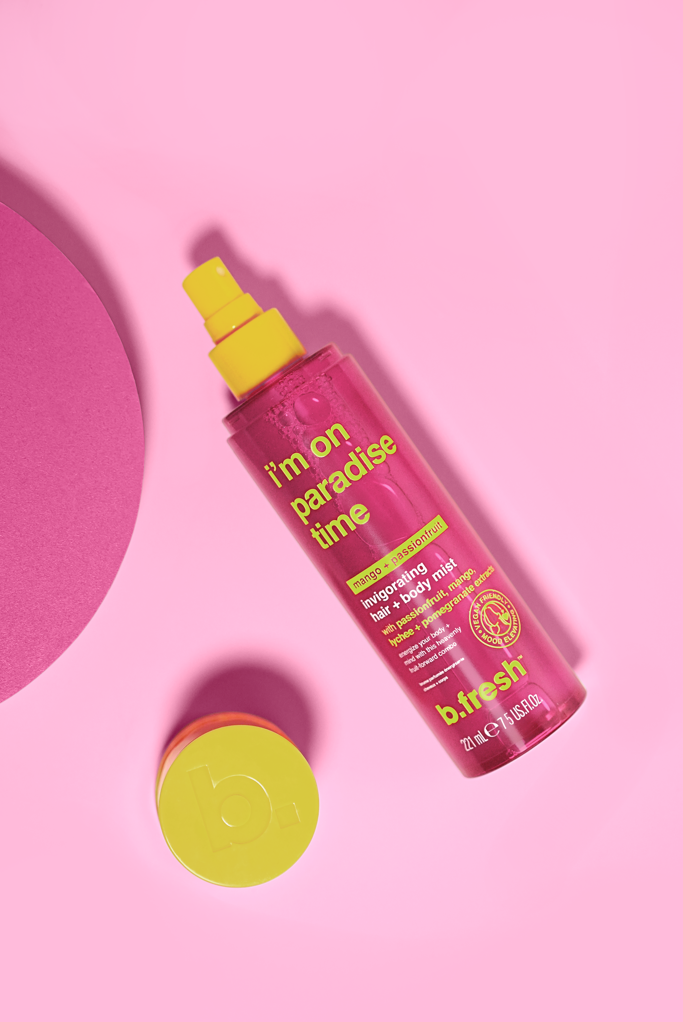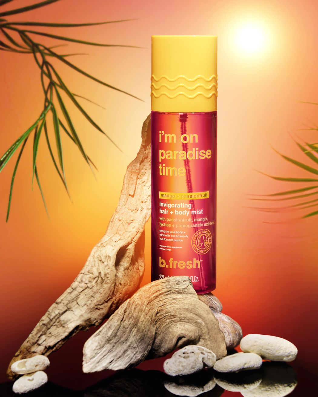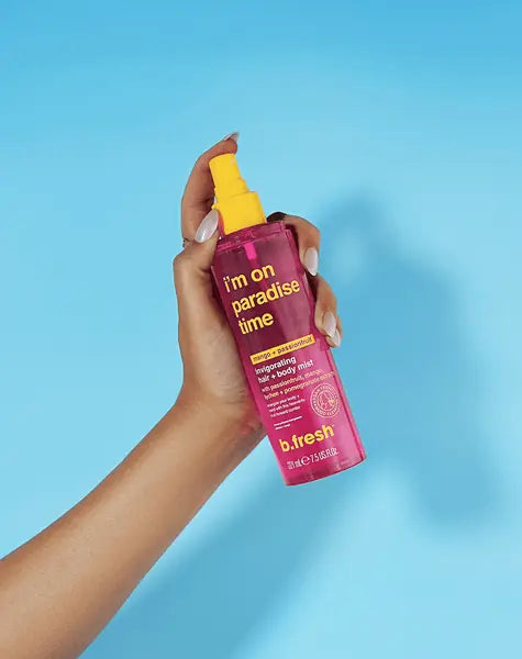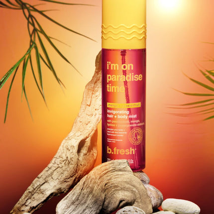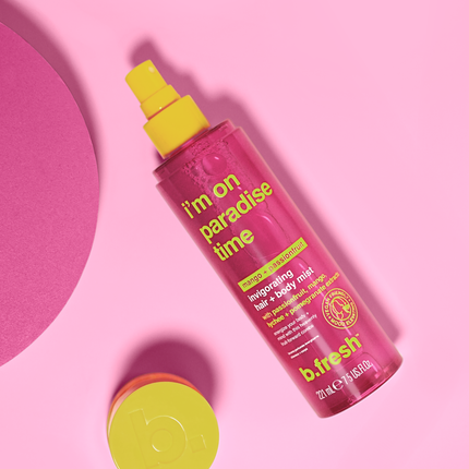 De B.fresh I'm On Paradise Time is dé ultieme oppepper voor je haar en huid! Deze verfrissende hair + body mist met passievrucht- en mango-extracten laat je haar glanzen, verjongt je huid en geeft je meteen een energieke boost. De heerlijke, tropische geur brengt je direct in vakantiestemming en maakt elke dag een beetje zonniger!