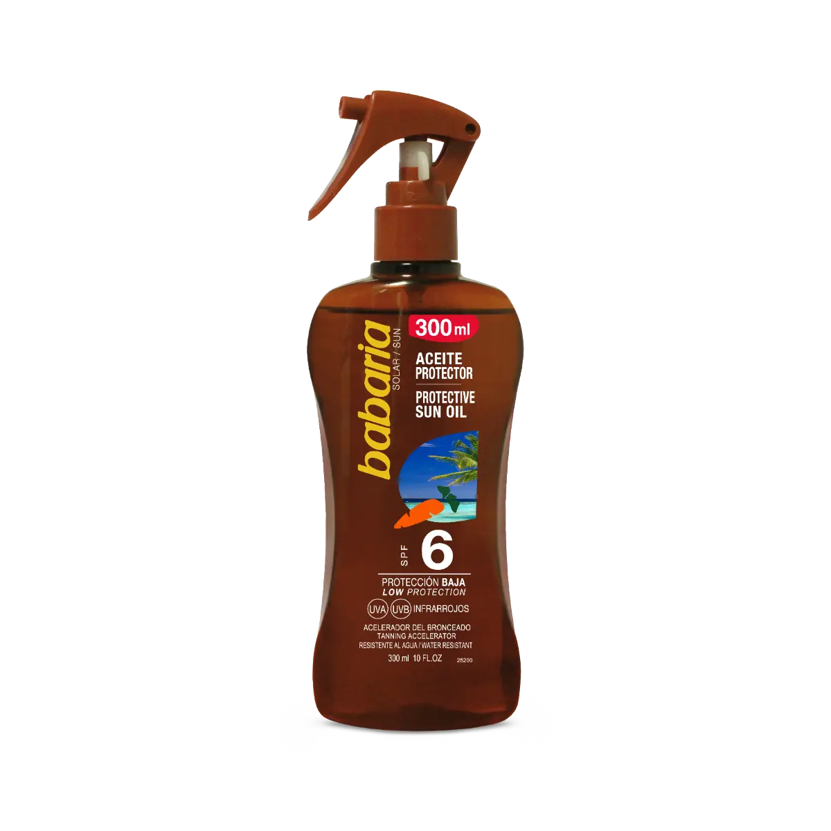 De Babaria Carrot Protective Sun Oil Spray SPF 6 is jouw perfecte partner voor een zomerse glow met een vleugje bescherming. Deze lichte, niet-vette olie is verrijkt met wortelolie, een natuurlijke bron van bètacaroteen en vitamine A, die de huid voedt en helpt bij het verkrijgen van een mooie, egale bruine teint. De formule biedt bescherming tegen UVA- en UVB-stralen en is waterbestendig, ideaal voor zonnige dagen aan het strand of bij het zwembad.