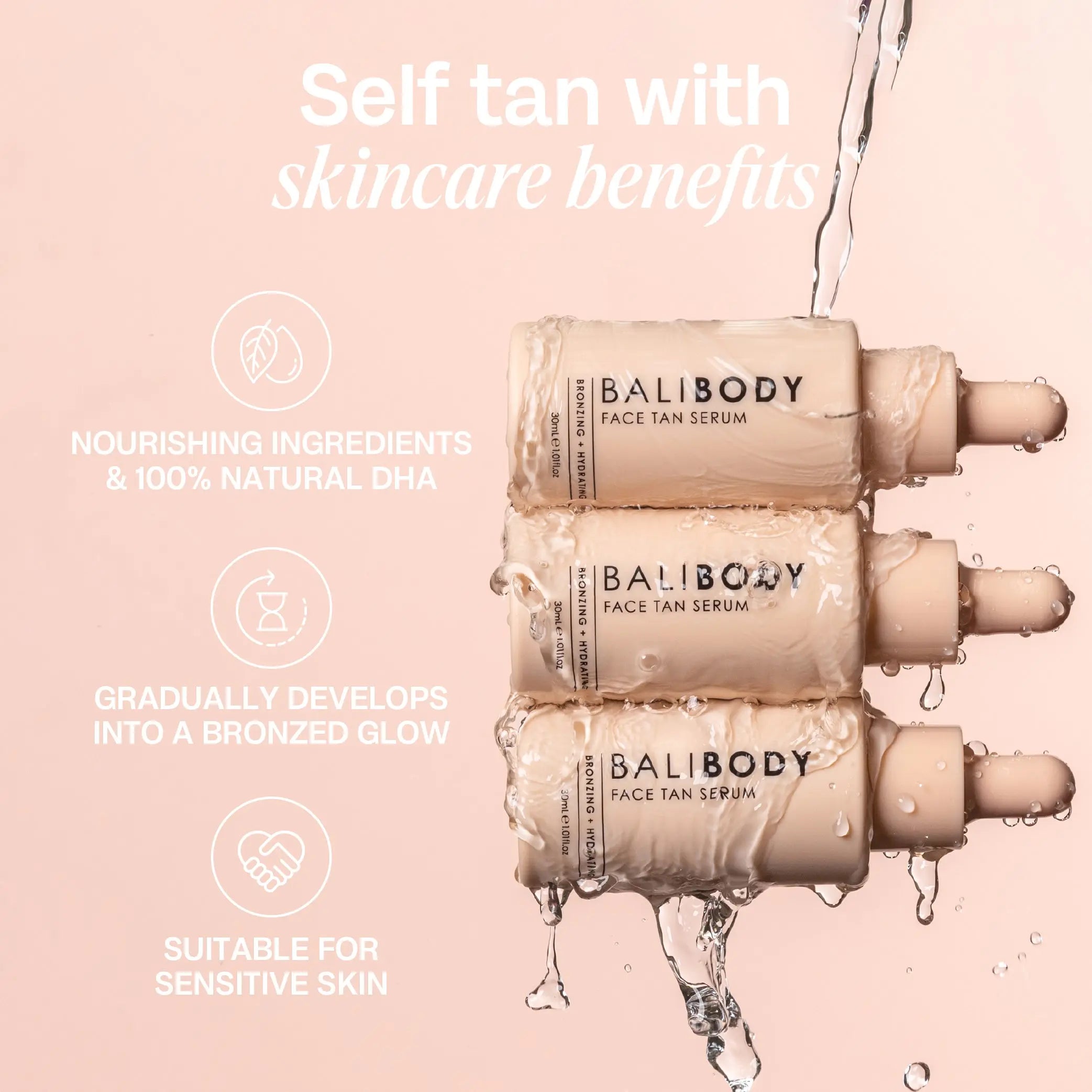 Het Bali Body Face Tan Serum is een serum met zelfbruiner voor je gezicht, dat geschikt is voor alle huidtypen. Dit lichtgewicht serum irriteert je huid niet en verstopt ook je poriën niet!