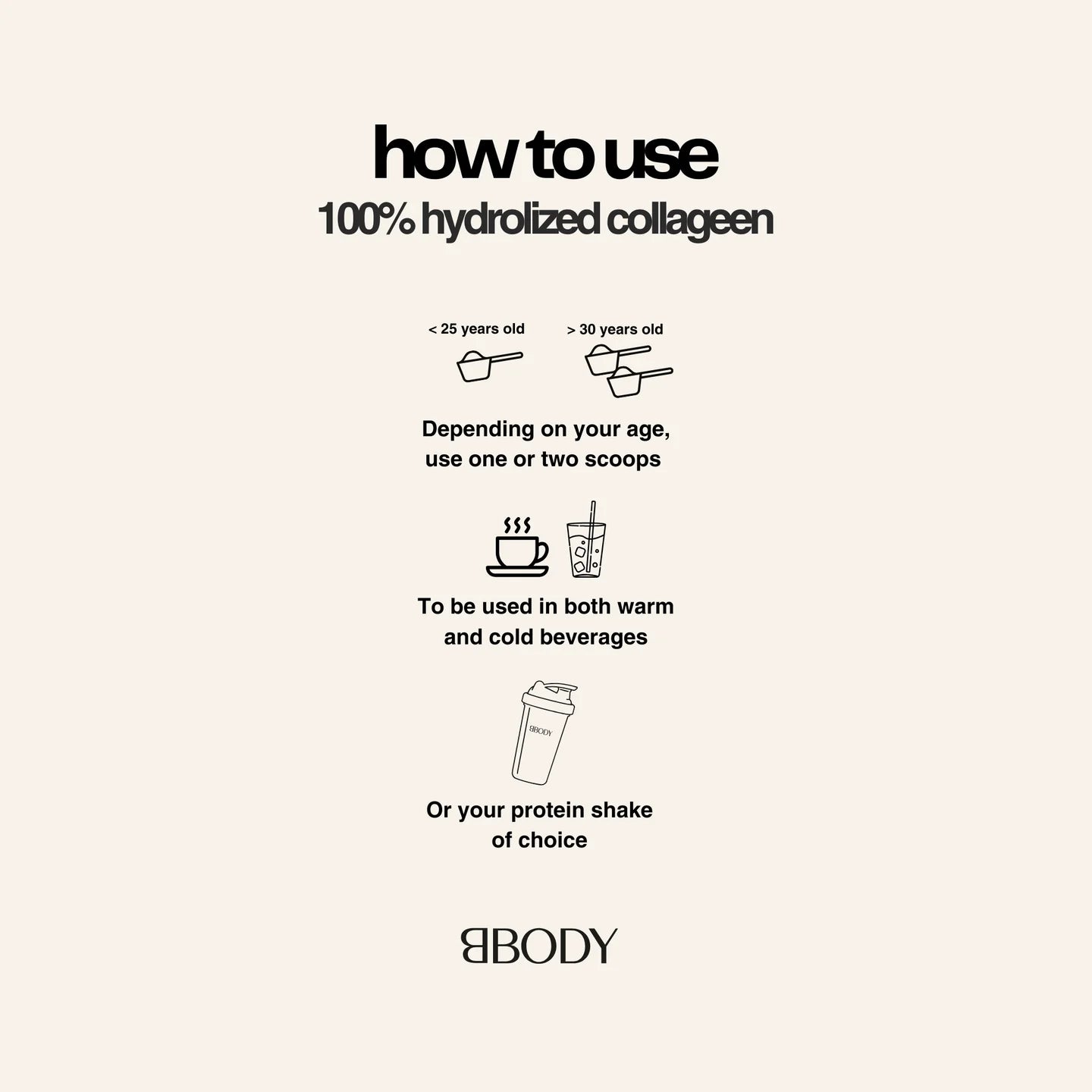 Verkozen tot nummer 1 door toonaangevende Vlaamse en Franse beauty magazines, is het geen wonder dat deze collageen de koploper is in de wereld van beauty-supplementen. Dit komt doordat ze bij Bbody hebben gekozen voor 100% gehydrolyseerde marine collageen gemaakt van wilde kabeljauw MSC- gecertificeerde vissen huiden. Bovendien is deze collageen vrij van bewerkte zoetstoffen zoals fructose en stevia, want dit breekt collageen af.