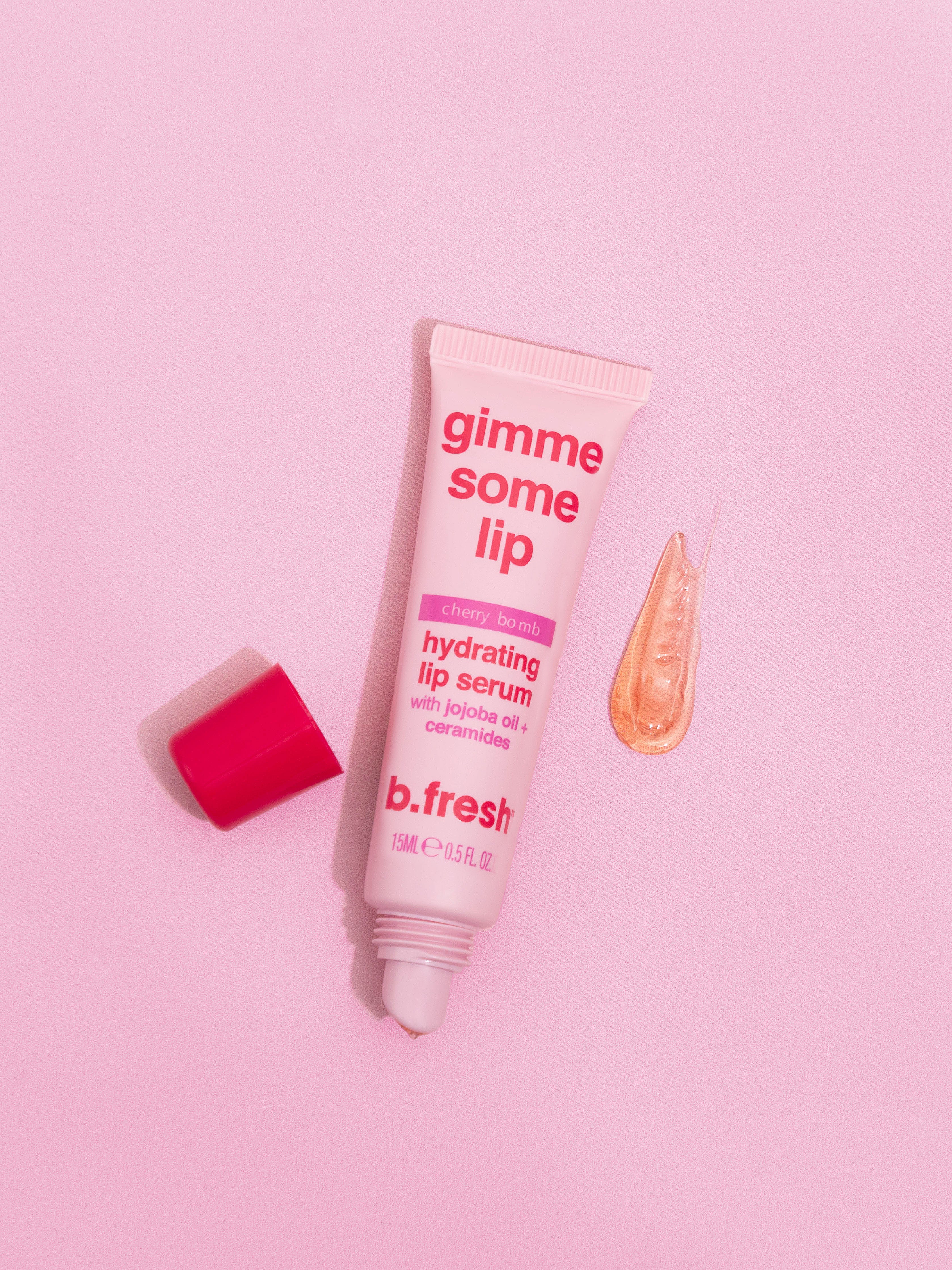 Het B.fresh Gimme Some Lip Lip Serum is speciaal ontwikkeld om droge lippen te herstellen en te verzachten. Doordrenkt met voedende jojoba olie en ceramiden, biedt dit serum een diepe hydratatie door vocht vast te houden en de natuurlijke barrière van je lippen te versterken!