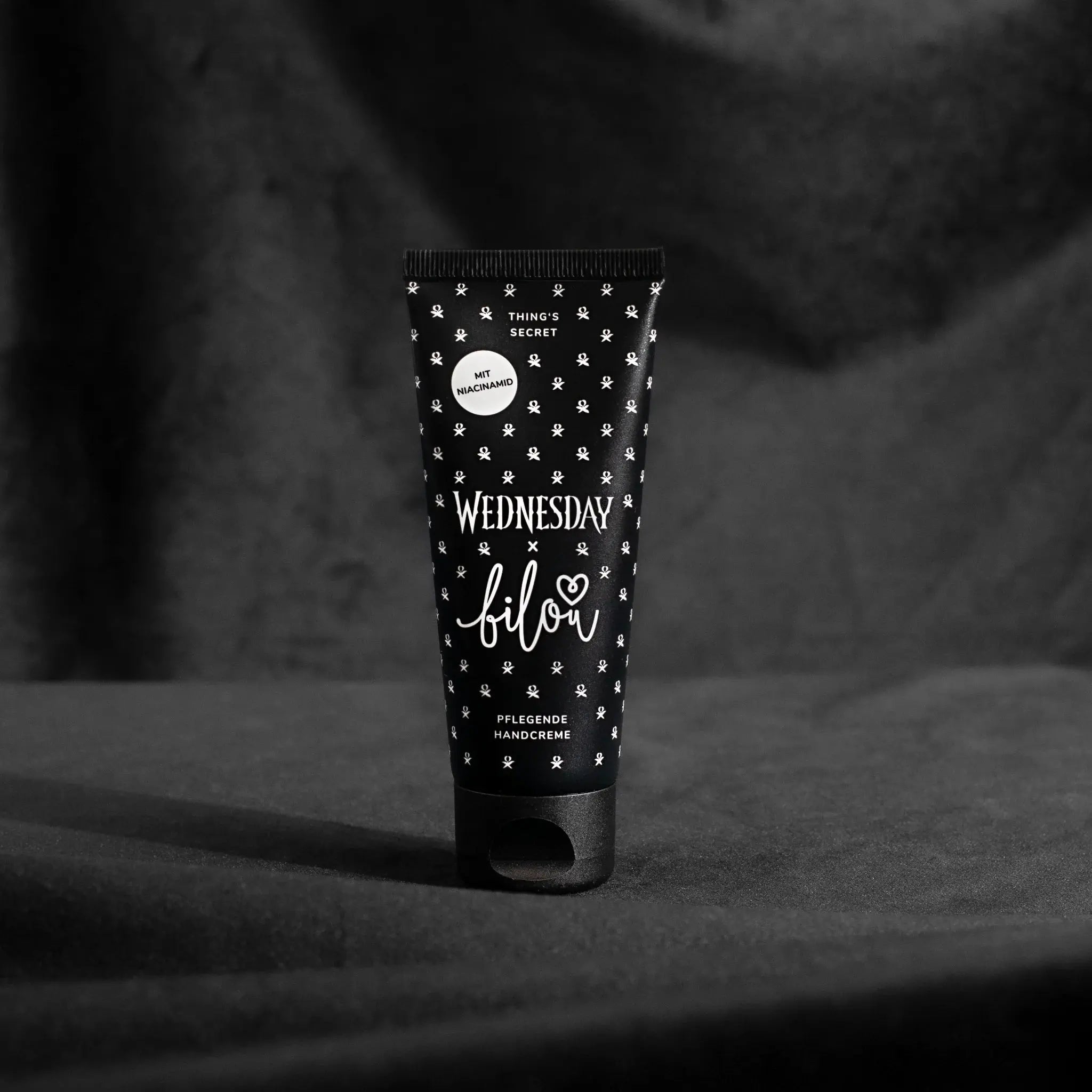 De Bilou x Wednesday Handcream Thing's Secret is dé must-have voor mysterieuze beauties die houden van een onverwachte twist. Deze limited edition handcrème is geïnspireerd op de iconische sfeer van Wednesday en zit boordevol karakter: net als jij. De geur? Een magische mix van donkere amber, sappige rode appel en tropische passiebloem. Intens, verleidelijk en totally uniek.