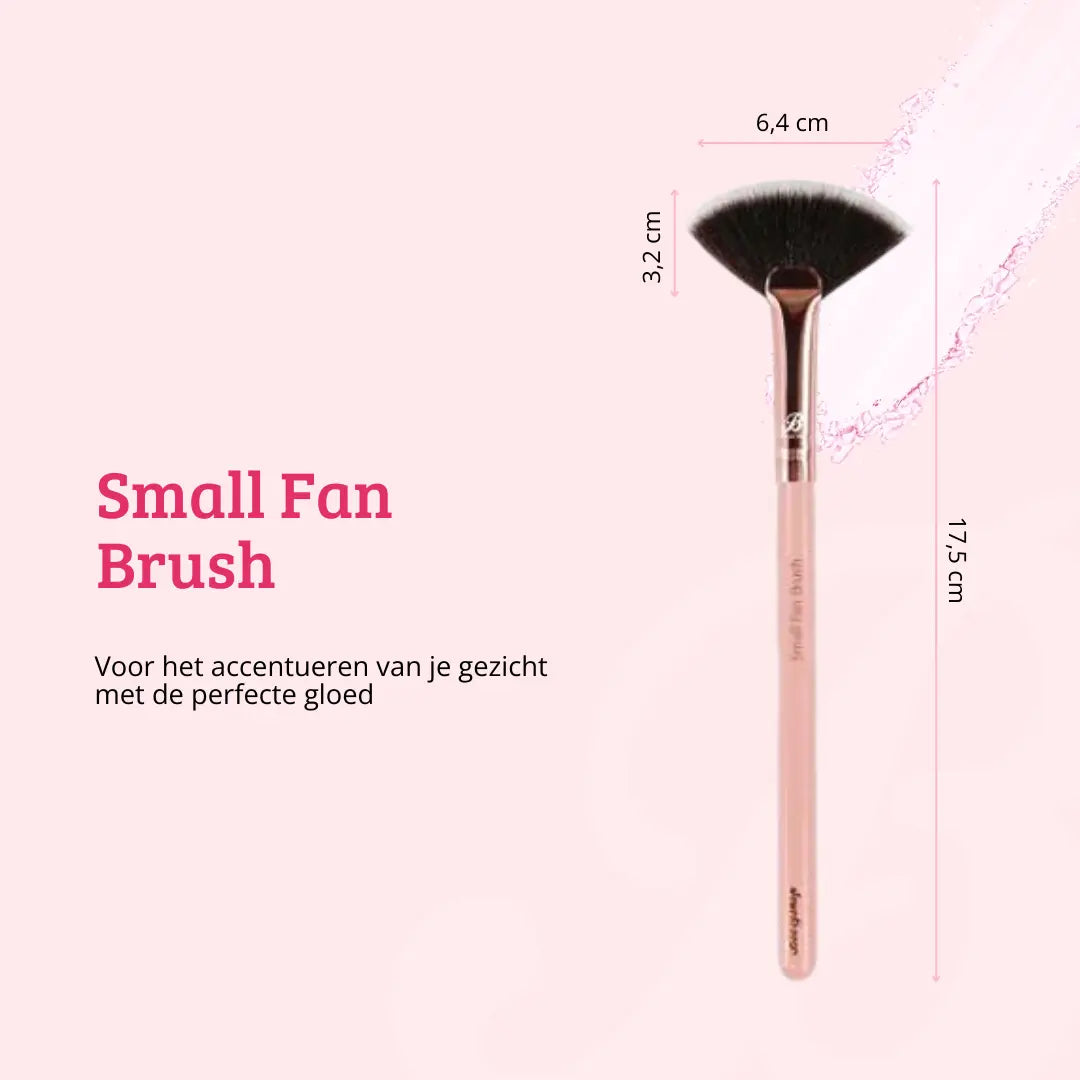 De Boozyshop Pink & Rose Gold Small Fan Brush is een kwast speciaal ontworpen om jouw highlighter op de perfecte manier aan te brengen, maar kan ook worden gebruikt om fall-out onder je ogen weg te halen. Speel met de intensiteit door de highlighter geconcentreerd aan te brengen of juist uit te blenden, deze fan brush kan alles.