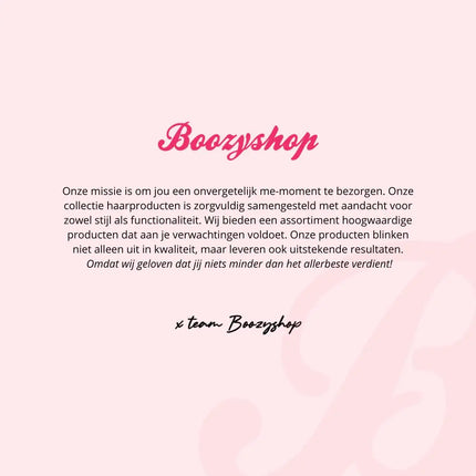 Bij Boozyshop streven we naar haarproducten die voor iedereen toegankelijk zijn, ongeacht geslacht, huidskleur of identiteit. We zijn er trots op dat al onze producten vegan zijn en niet op dieren worden getest. We zijn groot voorstander van eerlijke beautyproducten, vervaardigd uit natuurlijke ingrediënten en vrij van controversiële bestanddelen.
