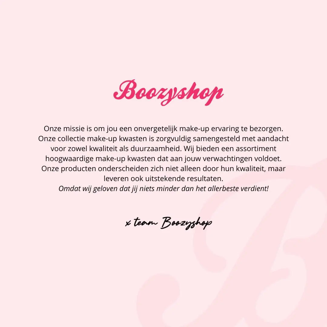 Bij Boozyshop geloven we dat een perfecte make-up look voor iedereen toegankelijk moet zijn, ongeacht geslacht, huidskleur of identiteit. Onze make-upkwasten zijn van topkwaliteit en toch betaalbaar, waardoor we de ideale oplossing bieden voor iedereen die een prachtige make-up look met een perfecte finish wilt creëren.