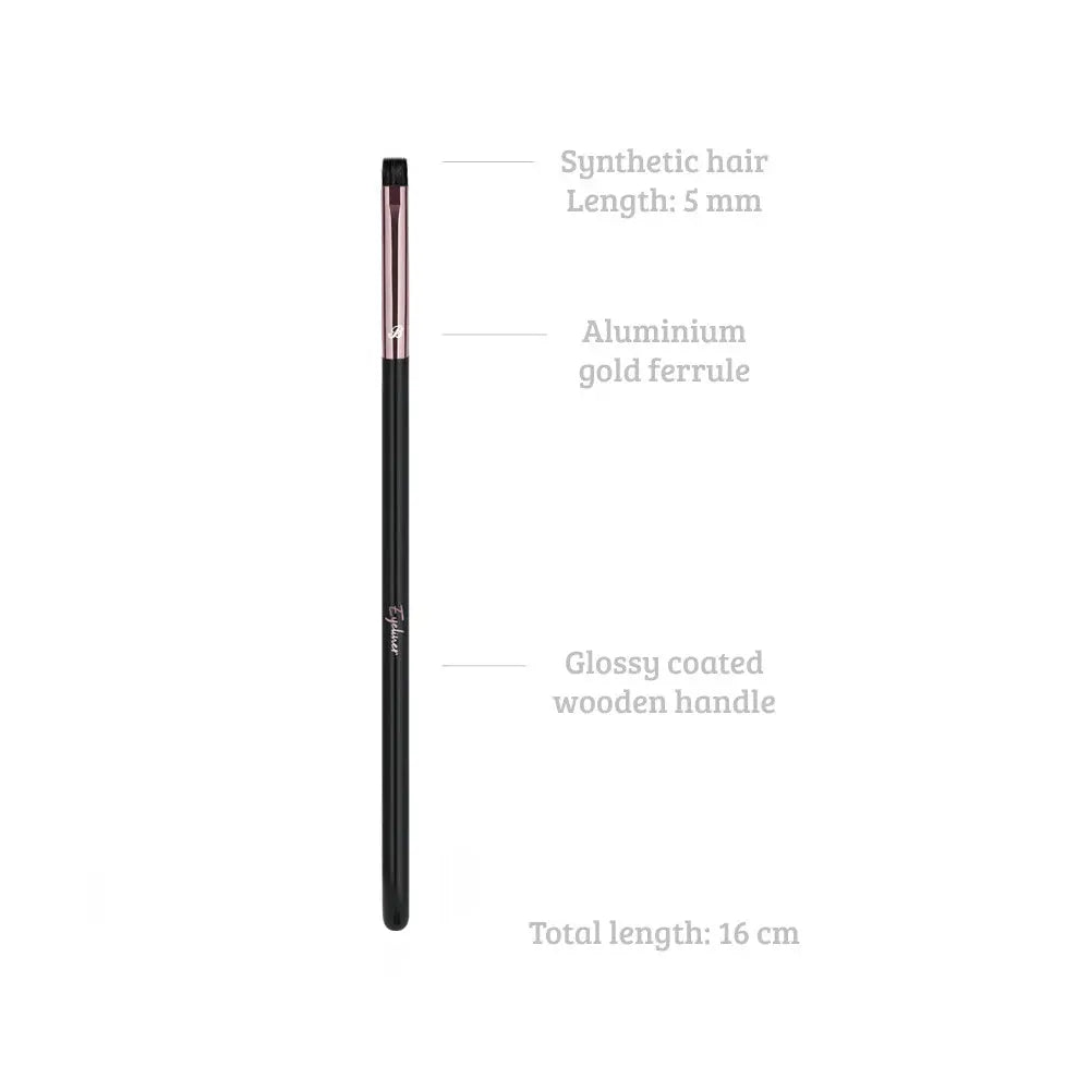De kwast is ontworpen met ultra zachte, synthetische haartjes die zorgen voor maximale controle en precisie. Dankzij het smalle en stevige penseelpuntje breng je je eyeliner moeiteloos aan, of je nu werkt met gel, vloeibare eyeliner of oogschaduw. En die afwerking? Luxe all the way! Met een glanzend zwart massief houten handvat en een gouden aluminium ferrule ziet deze brush er niet alleen professioneel uit, hij ligt ook fijn in de hand.