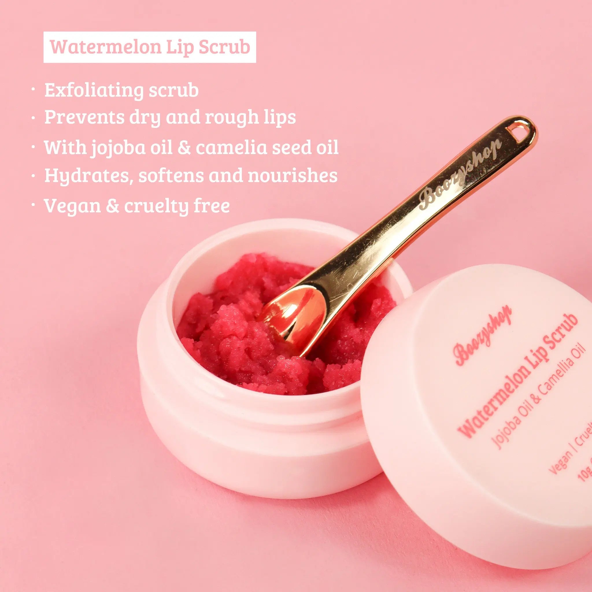 Het fancy roze potje staat natuurlijk super leuk in je badkamer naast alle andere Boozy producten maar is door haar formaat ook ideaal om mee te nemen! Vanaf nu heb je dus overal super zachte lippen met de Boozyshop Watermelon Lip Scrub!