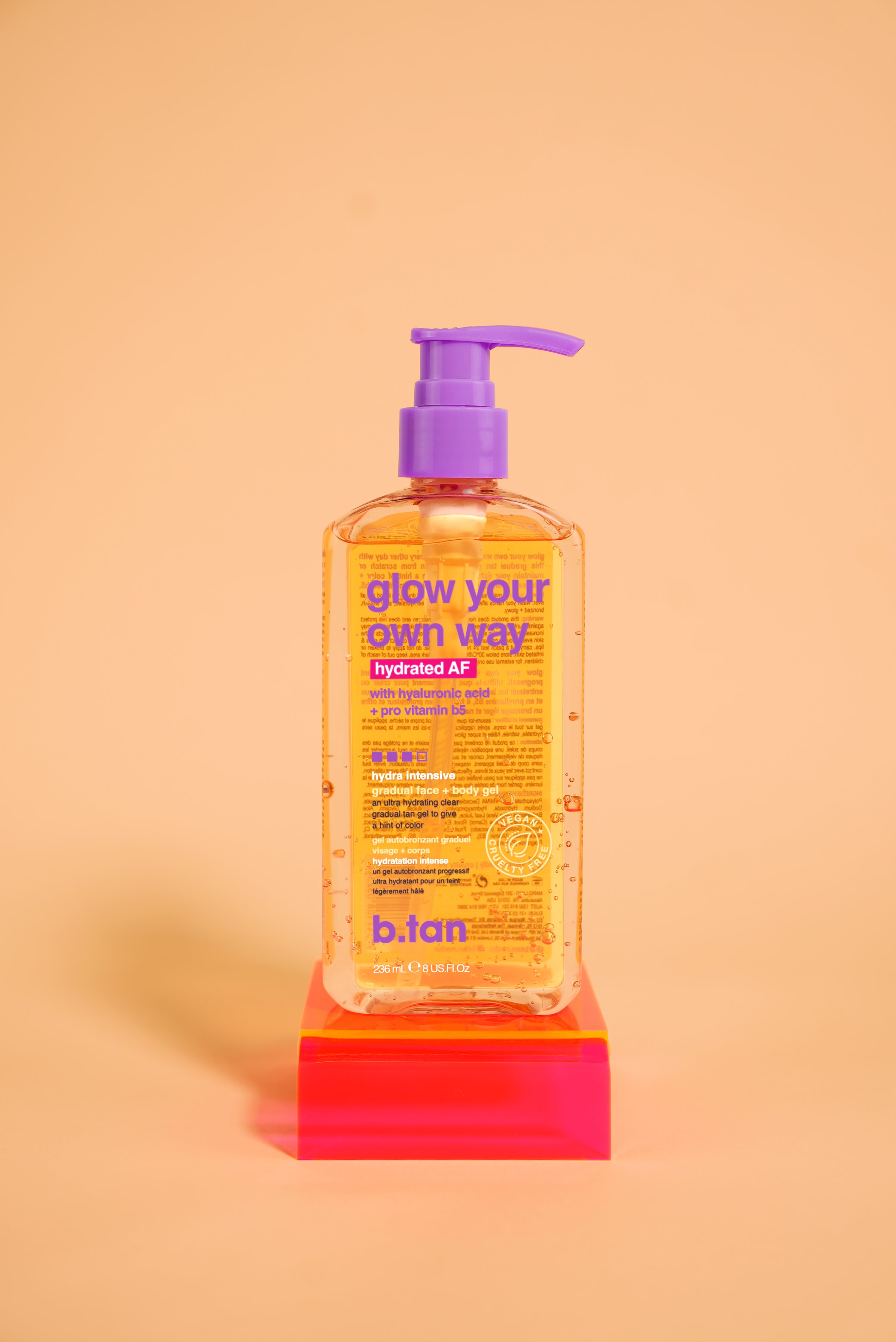 Met de B.tan Glow Your Own Way Hydrated AF Self Tan Gel geniet je snel en gemakkelijk van een stralende, mooie bruine kleur, zonder gedoe. Dus, waar wacht je nog op? Laat je huid stralen en geniet van die prachtige gloed!