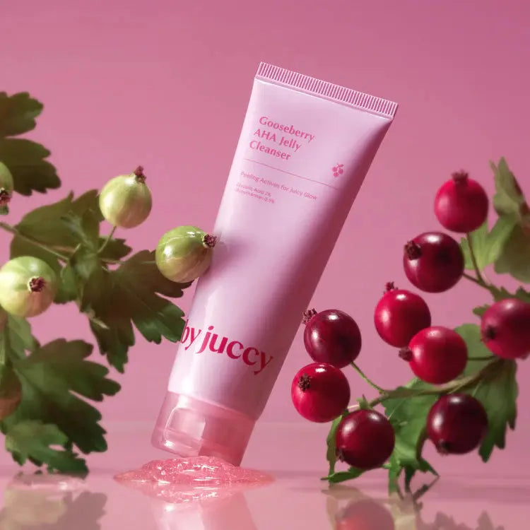 De By Juccy Gooseberry AHA Jelly Cleanser is jouw nieuwe glow bestie in een jelly-textuur. Deze frisse, roze reiniger zit boordevol Gooseberry, Vita Berry Blends én maar liefst 20.000 ppm Glycolic Acid, perfect om je huid elke dag mild te exfoliëren en te laten stralen als een juicy glazed donut.