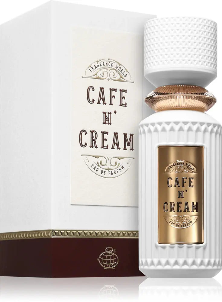 De Fragrance World Cafe N'Cream Eau De Parfum is als je favoriete dessert in parfumvorm. Denk aan een warme cappuccino met een vleugje amaretto, romig vanille-ijs en een knapperig koekje erbij. Deze geur is gourmand heaven, en perfect voor iedereen die dol is op zoet, warm en comfy.
