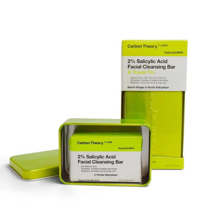 De Carbon Theory SupacylicMax Tin & Bar is jouw krachtige travel buddy tegen onzuiverheden! Deze compacte travel set bevat de iconische cleansing bar met 2% salicylzuur in een exclusief reisformaat, verpakt in een TSA-goedgekeurde, stijlvolle aluminium tin. Ideaal voor onderweg of op vakantie!