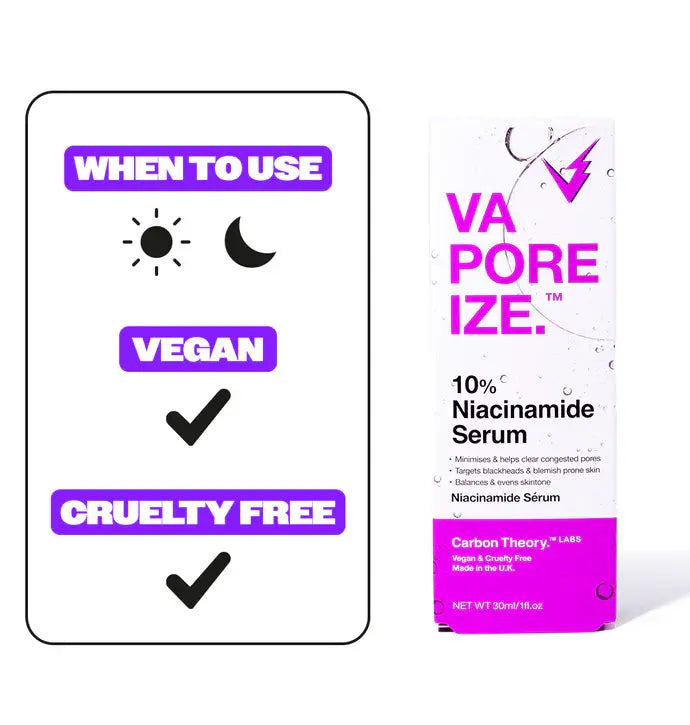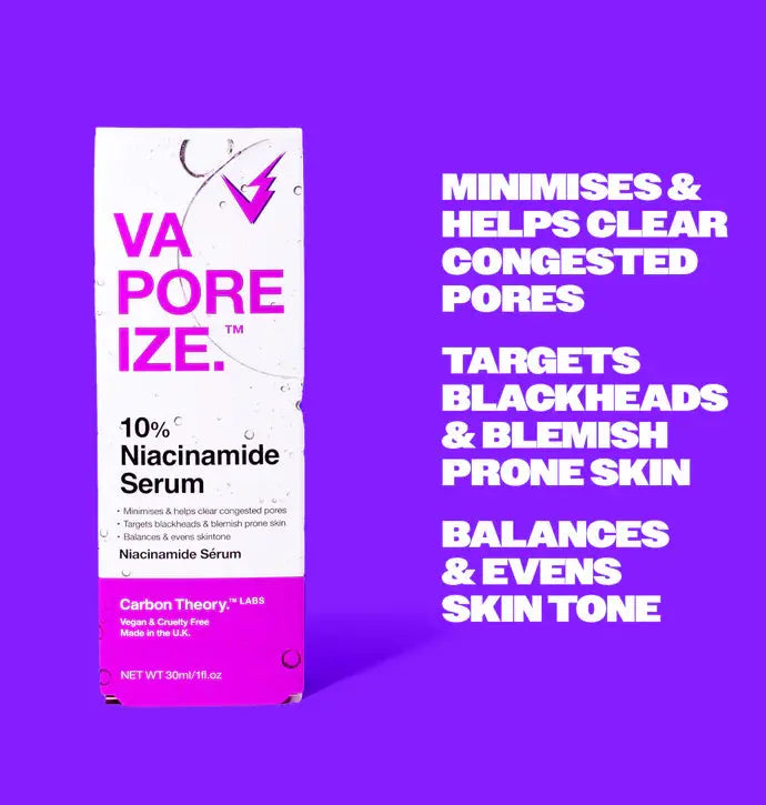 Het Carbon Theory VaPOREize 10% Niacinamide Serum is jouw dagelijkse boost voor een heldere, gebalanceerde huid. Met 10% niacinamide en 1% zink helpt dit serum verstopte poriën te zuiveren, mee-eters te verminderen en een egalere teint te creëren – zonder je huid te overbelasten. Perfect voor dagelijks gebruik, zelfs als je een gevoelige of gecombineerde huid hebt.