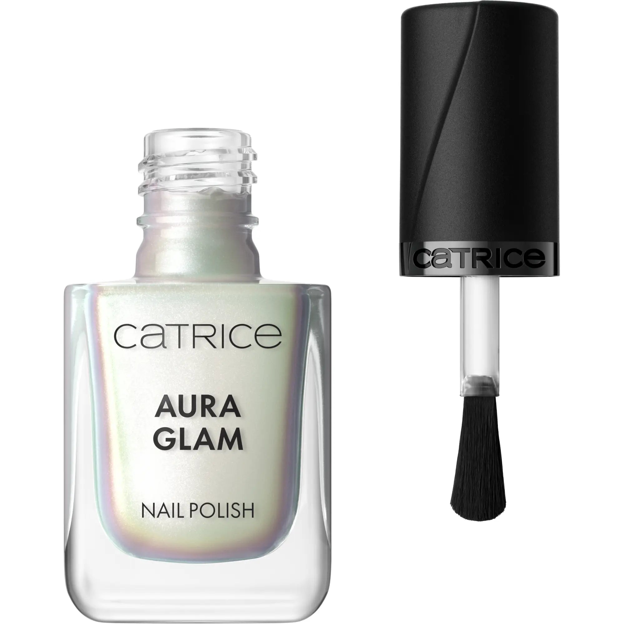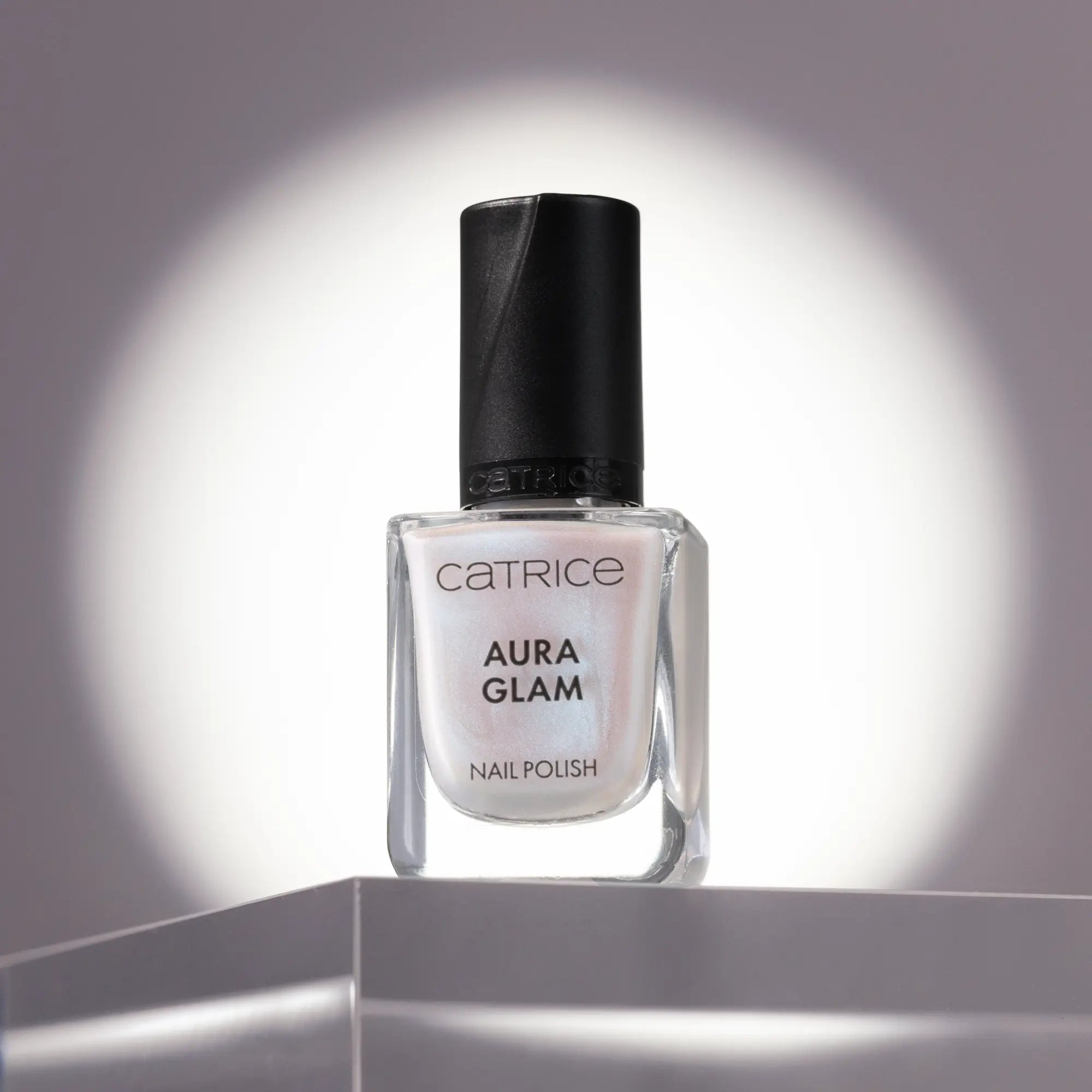 De Catrice Aura Glam Nail Polish 010 Glacier Glow dompelt je nagels onder in pure magie. De witte nagellak bevat een iriserende groene en blauwe glans die in het licht verschuift en zo een multidimensionaal effect creëert. Ideaal voor een statement manicure met een glamoureuze twist.