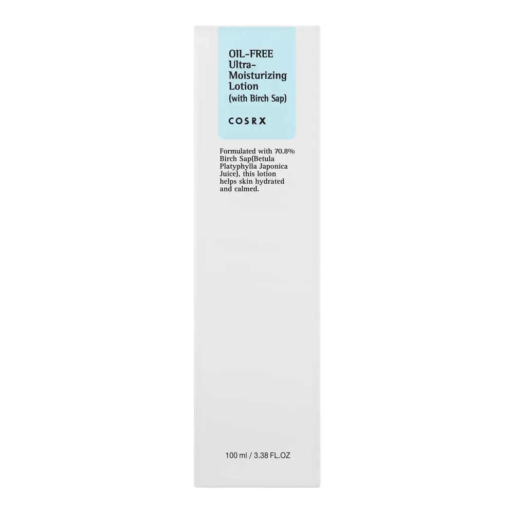 COSRX Oil Free Ultra Moisturizing Lotion is een lotion die niet in jouw skincare routine mag ontbreken en is geschikt voor de droge, gevoelige huid. Deze gezichtslotion bestaat voor wel 70% uit Berkensap om de gevoelige en geïrriteerde huid te kalmeren. Deze lotion is perfect geschikt voor een droge huid met acné en verricht wonderen voor je huid tijdens de koude dagen.