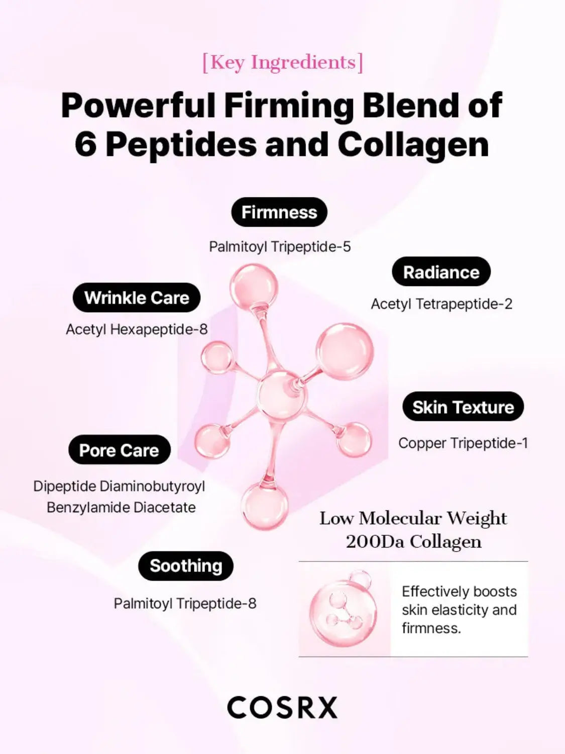 Aqua/Water, Glycerin, Acrylates Copolymer, Niacinamide, 1,2-Hexanediol, Ceratonia Siliqua (Carob) Gum, Chondrus Crispus, Agar, Erythritol, Sclerotium Gum, Potassium Chloride, Sucrose, Cellulose Gum, Polyglyceryl-10 Laurate, Panthenol, Ethylhexylglycerin, Allantoin, Xanthan Gum, Adenosine, Sodium Phytate, Hydrolyzed Collagen, Hydrogenated Lecithin, Cetearyl Alcohol, Cyanocobalamin, Stearic Acid, Tocopherol, Acetyl Hexapeptide-8, Butylene Glycol, Pentylene Glycol, Acetyl Glucosamine, Ceramide NP, Sodium Hyaluronate, Sodium Hyaluronate Crosspolymer, Hydrolyzed Hyaluronic Acid, Ceramide NS, Palmitoyl Tripeptide-5, Phytosphingosine, Cholesterol, Hyaluronic Acid, Ceramide AP, Ceramide AS, Caprylyl Glycol, Dipeptide Diaminobutyroyl Benzylamide Diacetate, Hydrolyzed Sodium Hyaluronate, Copper Tripeptide-1, Acetyl Tetrapeptide-2, Dextran, Palmitoyl Tripeptide-8, Ceramide EOP.