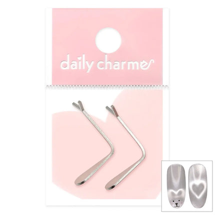 De Daily Charme Cat Eye Beating Heart Metal Clip Set is dé tool die je nodig hebt voor die iconische, virale beating heart nail look! Deze handige Y-vormige metalen clips helpen je om super strakke en symmetrische hartvormen te creëren in cat eye gel polish, en dat zonder gepruts met paperclips. Combineer met een cilindermagneet voor het beste resultaat en laat je nail art hartjes kloppen van geluk!