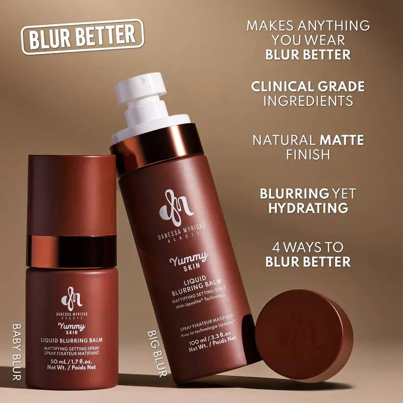 De Danessa Myricks Beauty Yummy Skin Liquid Blurring Setting Spray is de eerste setting spray die je gebruikt zoals een poeder, yes please! Deze innovatieve spray breng je niet gewoon aan met een mist, maar druk je in de huid met een puff, sponge of brush voor een gerichte blur en een matterende finish, zonder witte waas of droog gevoel. Het resultaat? Een smooth, soft-focus effect alsof je een filter draagt, maar dan real life.