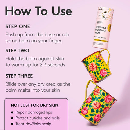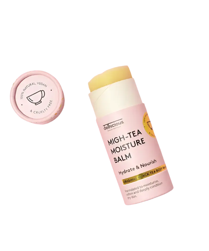 De Delhicious Migh-Tea Moisture Body Balm Original is een intens voedende body balm die je droge huid een echte oppepper geeft. Verrijkt met cafeïne uit ontstekingsremmende Indiase zwarte Assam-thee, trekt deze balm snel in en biedt directe verlichting voor de droge, trekkerige huid. De formule helpt roodheid te kalmeren en zorgt voor langdurige hydratatie, zodat je huid zijdezacht aanvoelt.