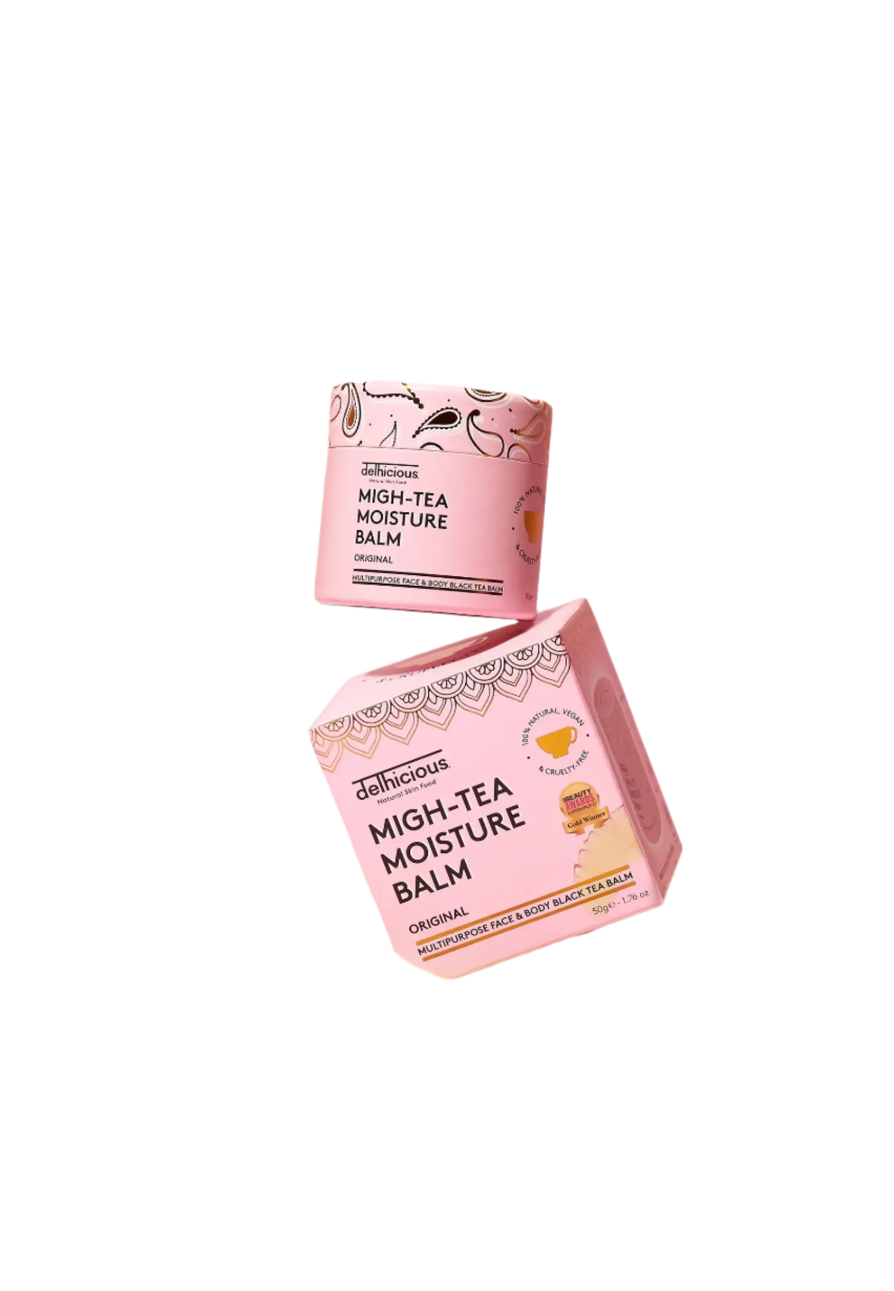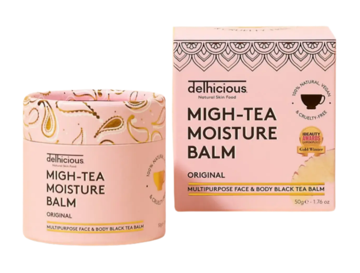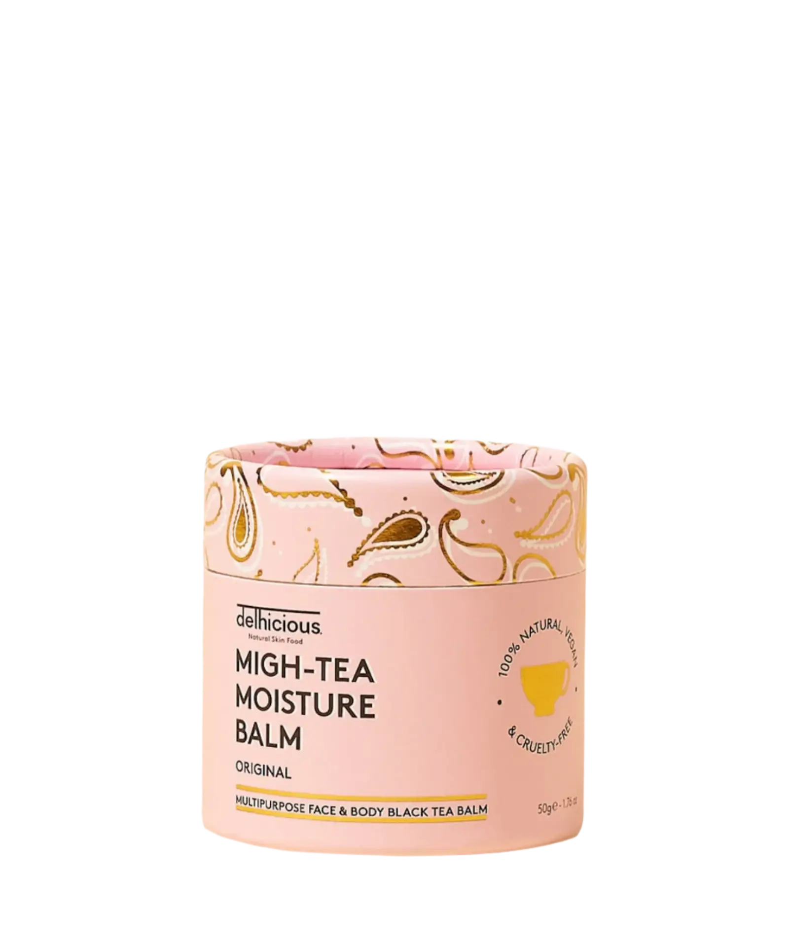 De Delhicious Migh-Tea Moisturise Multipurpose Balm Original is jouw redder in nood voor elke droge of geïrriteerde plek op je gezicht én lichaam. Deze multifunctionele balm is verrijkt met cafeïne uit Indiase zwarte Assam-thee, bekend om zijn kalmerende en ontstekingsremmende werking. De voedende formule smelt op je huid en biedt directe hydratatie, verzachting én een kalmerend effect, zelfs bij gevoelige of droge plekjes.