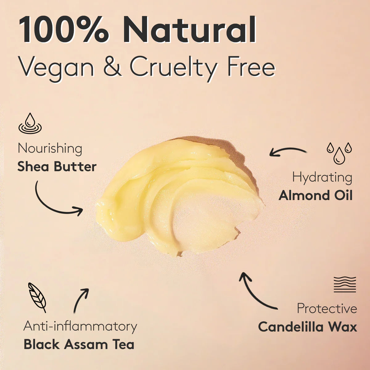 Butyrospermum Parkii Butter (Shea Butter), Prunus Amygdalus Dulcis (Sweet Almond) Oil, Candelilla Cera (Wax), Camellia Sinensis Leaf (Black Assam Tea), Fragrance, Limonene, Citral