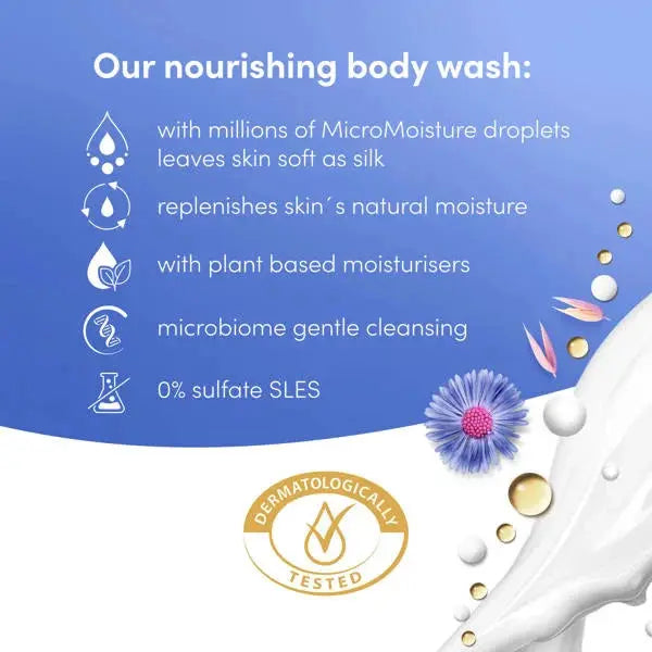 De kalmerende geur van blauwe kamille en havermelk prikkelt je zintuigen en zorgt voor een instant relaxte vibe. Dankzij de hydraterende formule met micro moisture technologie wordt je huid tot wel 24 uur gevoed en gehydrateerd, terwijl ze al na één douchebeurt zichtbaar verbetert. Bye stress, hello soft skin.