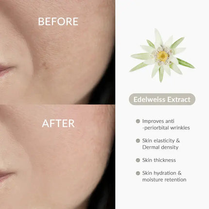 Water, Caprylic/Capric Triglyceride, Glycerin, Butylene Glycol, Cetearyl Alcohol, Polyglyceryl-3 Methylglucose Distearate, Cyclopentasiloxane, Polysorbate 60, Glyceryl Stearate, Palmitic Acid, 1,2-Hexanediol, Cyclohexasiloxane, Dimethicone, Benzyl Glycol, Stearic Acid, Sorbitan Sesquioleate, Ethylhexylglycerin, Carbomer, Arginine, Sodium Polyacrylate, Isopentyldiol, Tocopheryl Acetate, Allantoin, Propanediol, Dipotassium Glycyrrhizate, Polyglyceryl-4 Oleate, Disodium EDTA, Hydrolyzed Corn starch, Sucrose Palmitate, Dipropylene Glycol, Leontopodium Alpinum Extract, Lauric Acid, Hydroxydecyl Ubiquinone, Sucrose, Myristic Acid, Citrus Aurantium Bergamia (Bergamot) Fruit Oil, Anastatica Hierochuntica Extract, Butyrospermum Parkii (Shea Butter), Hydrolyzed Collagen, Silk Extract, Salmon Egg Extract, Beta-Glucan, Adansonia Digitata Fruit Extract, Hydrolyzed Glycosaminoglycans, Sodium Hyaluronate, Sodium Hyaluronate Crosspolymer, Copper Tripeptide-1, Hydrolyzed Hyaluronic Acid, Acetyl Hexapeptide-8, Hydroxypropyltrimonium Hyaluronate, Hyaluronic Acid, Sodium Acetylated Hyaluronate