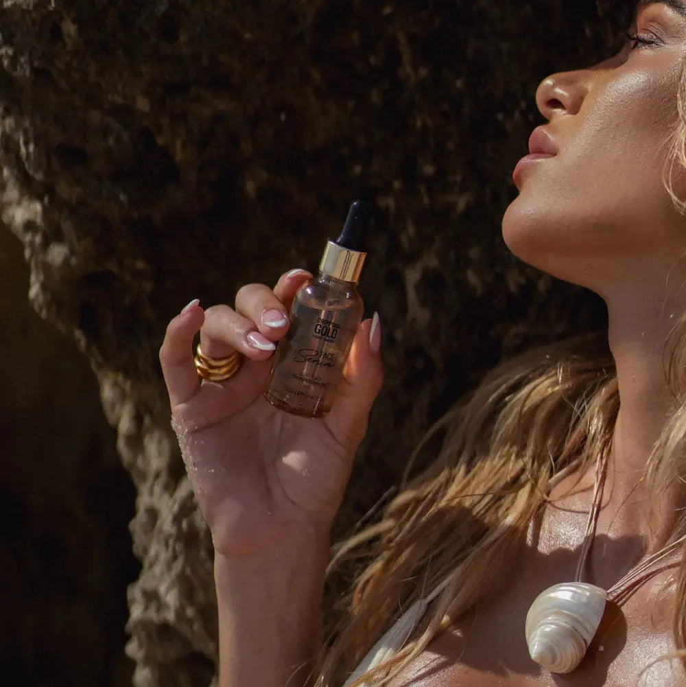 Het Dripping Gold Collagen Tanning Face Serum is jouw glow-boost speciaal voor het gezicht. Dit luxe tanning serum is ontwikkeld om je huid een natuurlijke, egale teint te geven terwijl het tegelijkertijd verzorgt en hydrateert.