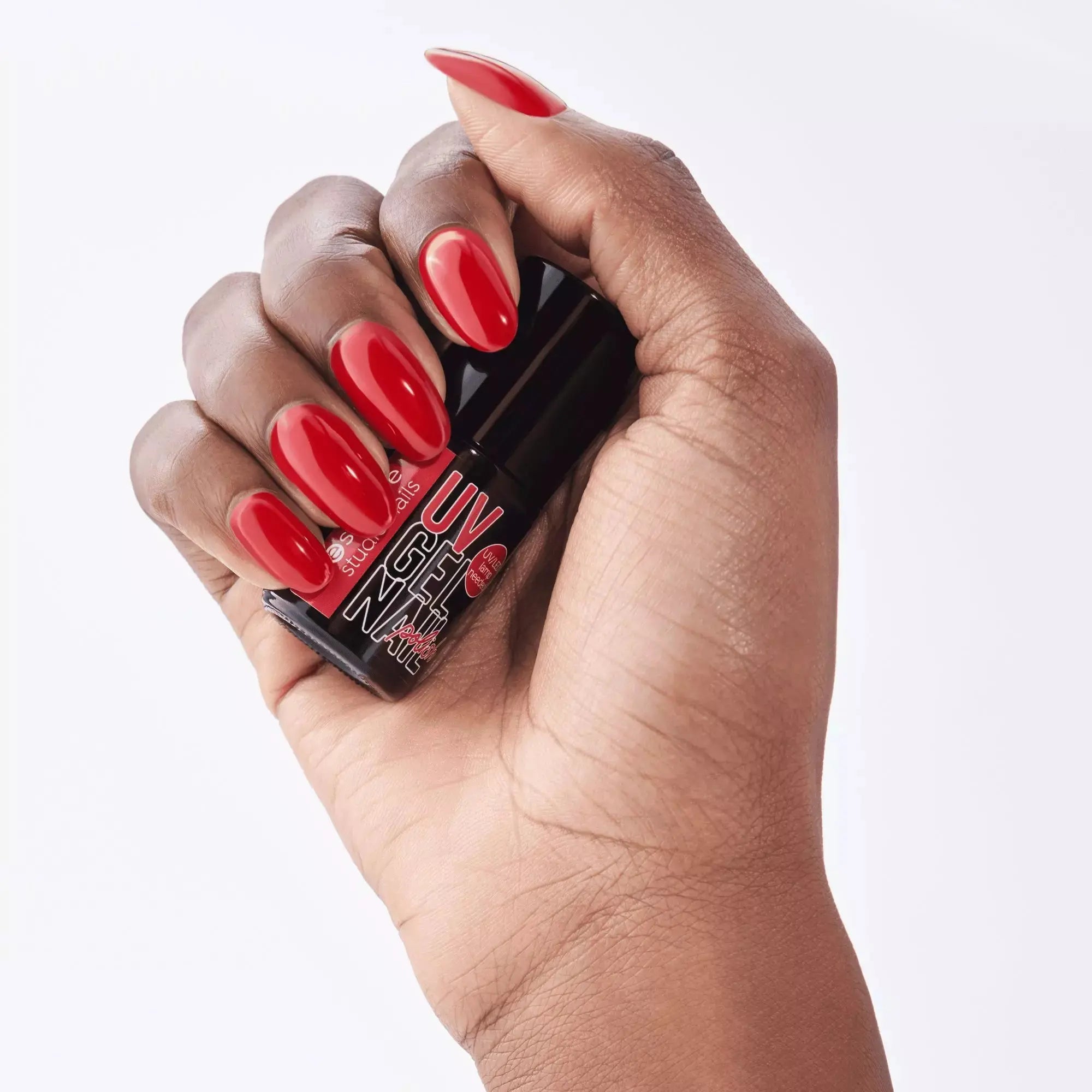 Gebruik deze lak als stap 2 van de 3-stappen UV manicure van Essence. Breng een dunne laag aan, hard uit onder een UV- of LED-lamp (36W) en herhaal voor een intensere kleur. Het resultaat? Een glossy, sterke finish die dagenlang blijft zitten. Ideaal als je geen zin hebt om elke dag bij te lakken. Combineer met de bijpassende base- en topcoat uit de Studio Nails lijn voor het beste resultaat.