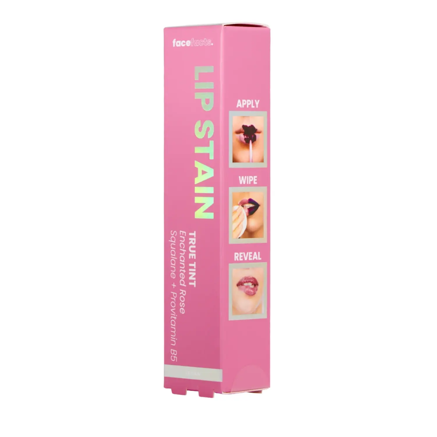 De Face Facts Lip Stain Enchanted Rose is dé perfecte match voor wie houdt van een zachte, romantische look met een vleugje magie. Deze lip stain geeft je lippen een long-lasting warmroze tint die niet afgeeft, terwijl de formule je lippen verzorgt en hydrateert.