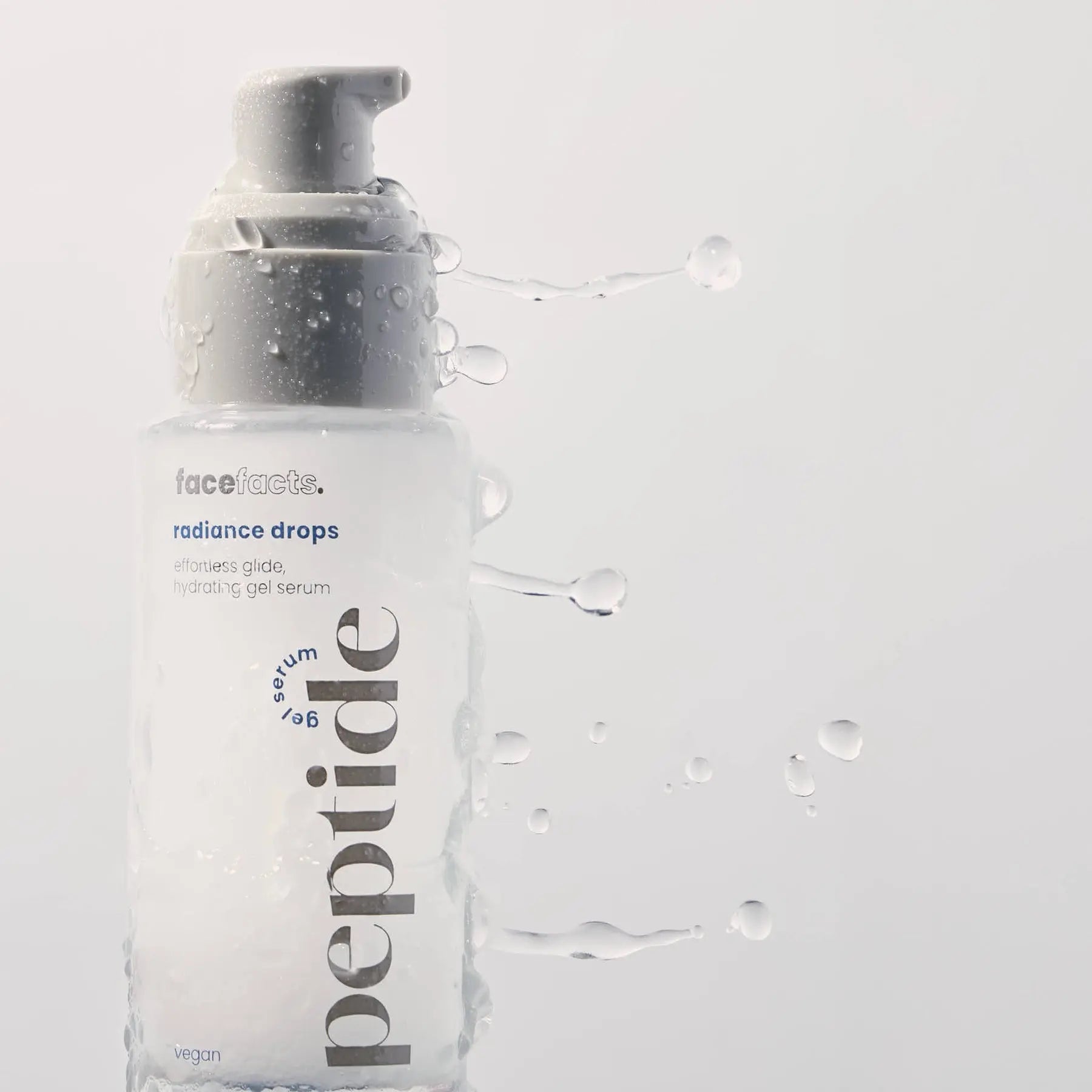 De Face Facts Peptide Radiance Drops zijn jouw shortcut naar een juicy glow en zichtbaar vollere huid. Deze lichte, hydraterende serumdrops zitten boordevol fijne ingrediënten zoals huidverstevigende peptides, vegan collagen, verhelderende papaya extract én kalmerende aloe leaf water.