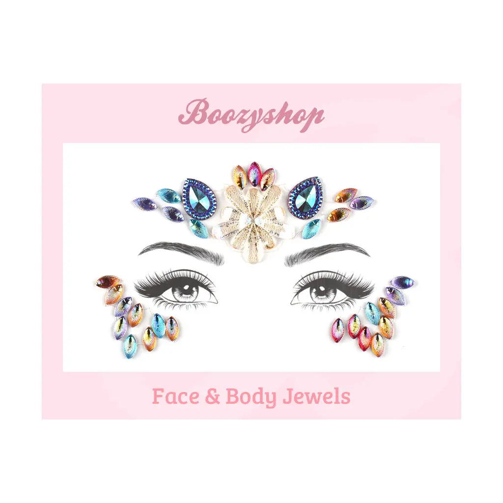 Ontdek de Boozyshop Face Jewels Sarah waarmee je in slechts enkele seconden flair toevoegt aan je look. Binnen no time is jouw look festival en summer proof! Deze prachtige face jewels hebben wij bij Boozyshop speciaal voor de party lovers ontworpen en zijn met zorg met de hand gemaakt.
