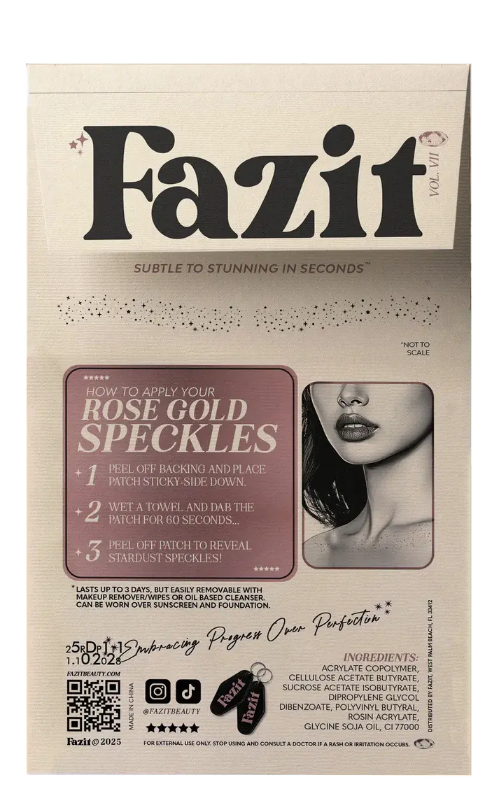Het Fazit Decolletage Speckles Rose is jouw geheime wapen voor een instant sparkle op je sleutelbeenderen. Deze shimmer patches geven je huid een subtiele maar opvallende rose gold glow die meteen de aandacht trekt – perfect voor een night out of gewoon omdat je er zin in hebt.
