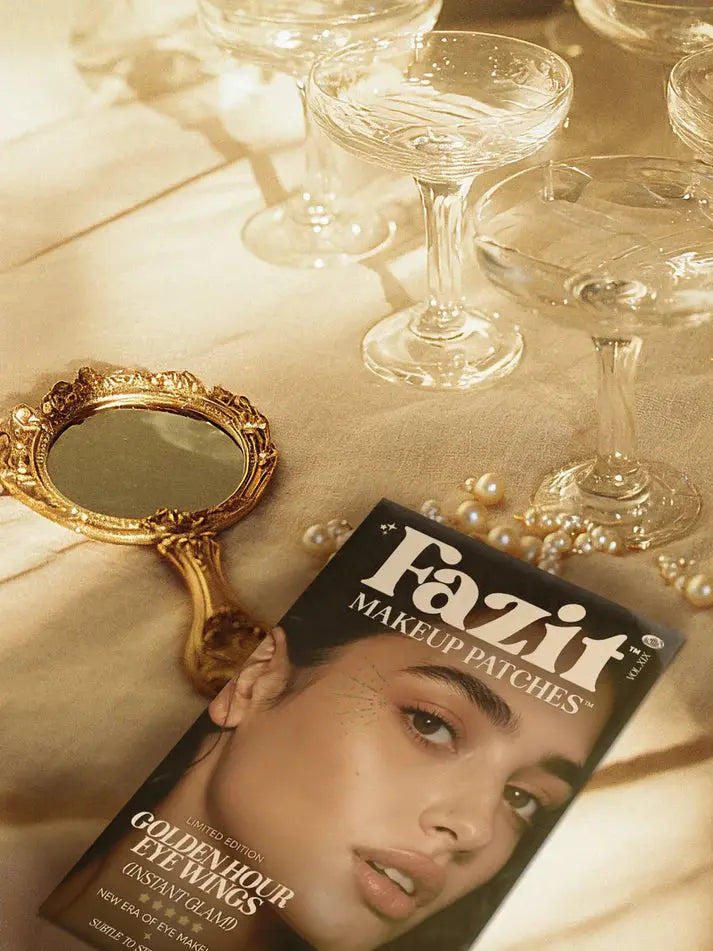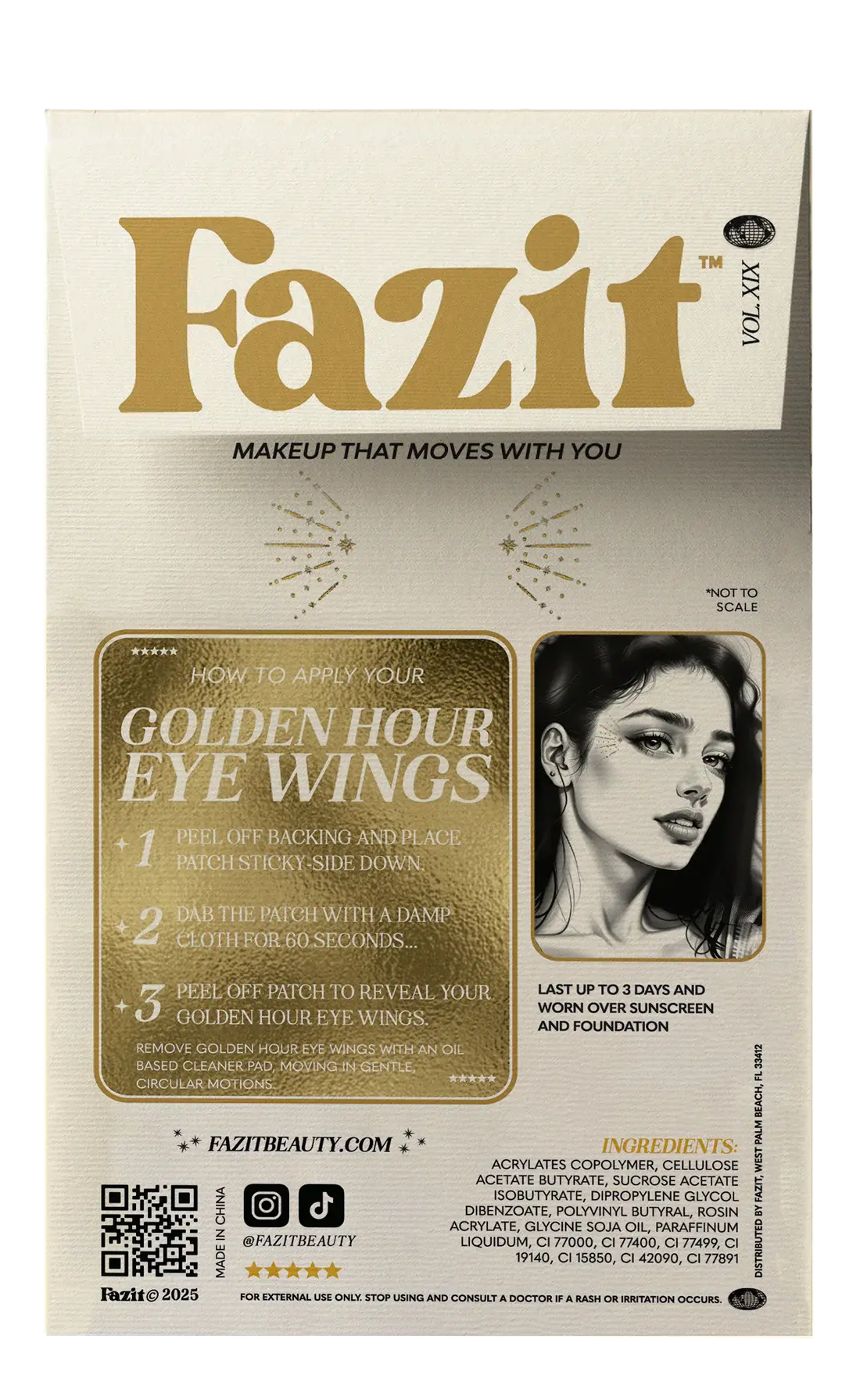 De Fazit Golden Hour Eye Wings zijn jouw shortcut naar een stralende golden hour look zonder gedoe. Deze metallic eye wings geven je direct dat warme, zonovergoten effect, zónder dat je kwasten, lijm of spiegels nodig hebt. Gewoon even plakken en shinen maar.