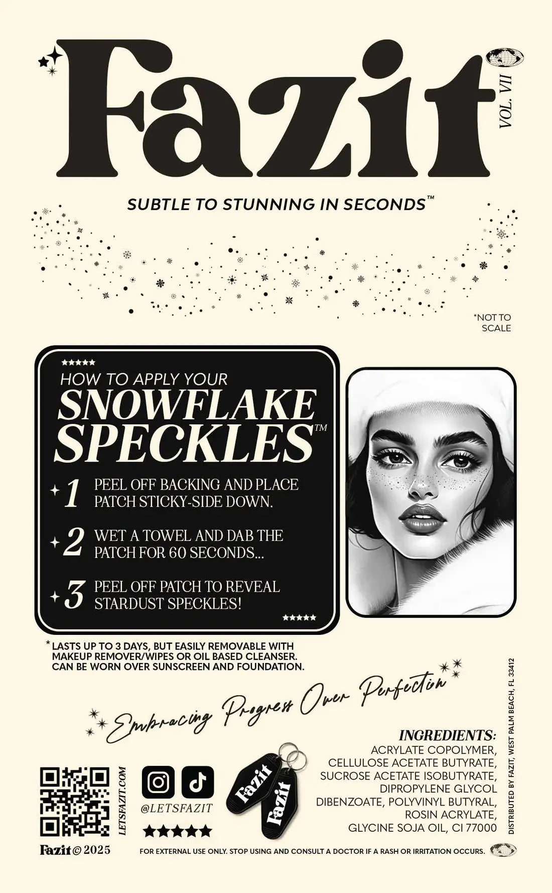 De Fazit Make Up Patches Snowflake Speckles geven je look een magische winterse touch! Deze limited-edition patches stralen in een ijzige mix van wit, blauw, roze en holografische spikkels, perfect voor een sprankelend winterwonder effect.