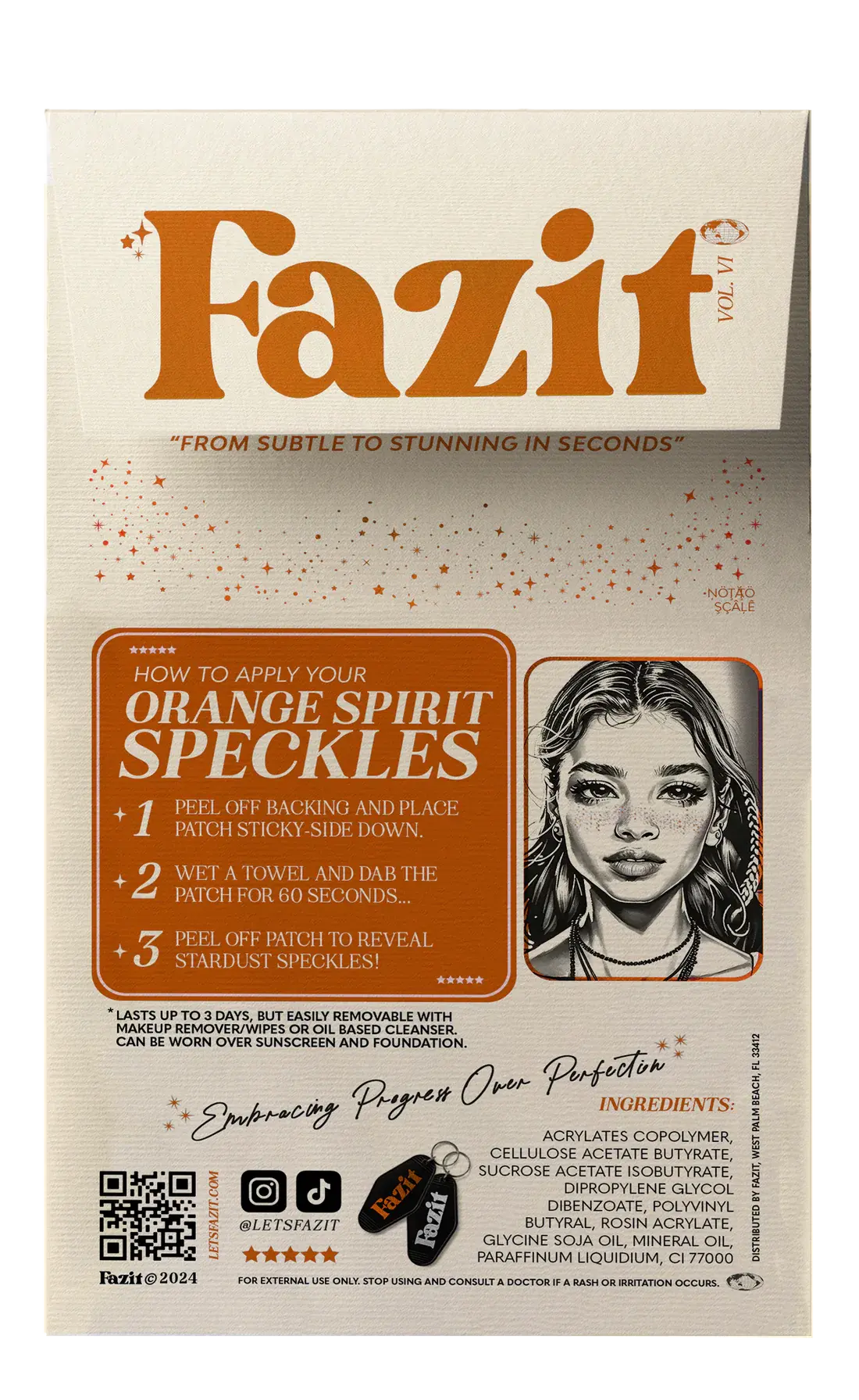 De Fazit Make Up Patches Orange Spirit Speckles zijn dé ultieme touch voor een sprankelende, gedurfde look! Deze patches zijn niet zomaar make-up, maar een echte statement. De schitterende oranje glitterspikkels geven je huid een magische gloed en laten je stralen als nooit tevoren.