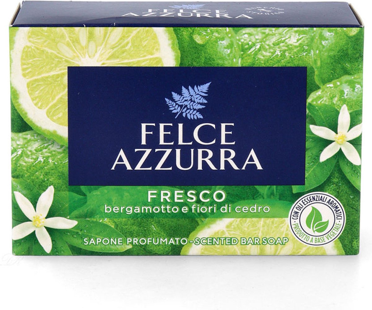 De Felce Azzurra Soap Fresh Scent is jouw dagelijkse opfrismoment verpakt in drie heerlijk geurende zeepblokken. Deze klassieke Italiaanse zeep brengt dat frisse net-gedoucht gevoel naar je wastafel en geeft je huid een zacht en verzorgd gevoel bij elke wasbeurt.