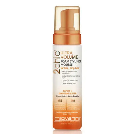 De Giovanni 2chic Ultra Volume Foam Mousse is een haar styling mousse die zorgt voor volume in je haar, zonder dit plakkerig of zwaar te maken! Deze mousse zorgt ook nog voor een heerlijk geurtje van mandarijnen en papaya in je haar, hoe lekker is dat?!