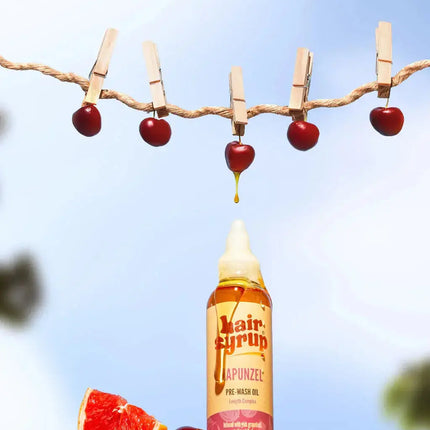Hair Syrup Rapunzel 100 ml: Prunus Amygdalus (Sweet Almond) Dulcis Oil, Ricinus Communis (Castor) Seed Oil, Prunus Armeniaca (Apricot) Kernel Oil, Olea Europaea (Olive) Fruit Oil, Persea Gratissima (Avocado) Oil, Linum Usitatissimum (Flaxseed) Seed Oil, Helianthus Annuus (Sunflower) Seed Oil, Prunus Avium (Cherry) Seed Oil, Simmondsia Chinensis (Jojoba) Seed Oil, Argania Spinosa (Argan) Kernel Oil, Punica Granatum (Pomegranate) Seed Oil, Citrus Grandis (Pink Grapefruit Essential Oil) Peel Oil, Dunaliella Salina Extract, Daucus Carota Sativa Seed Oil, Tocopherol, Ascorbyl Palmitate. Allergens: Citral, d-Limonene, Linalol. Contains nuts & seeds.