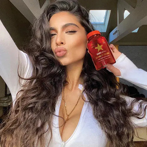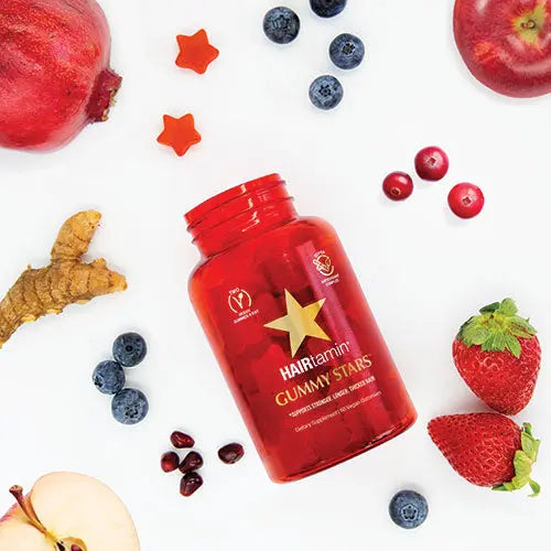 De Hairtamin Gummy Stars zijn heerlijke en voedzame haarvitamines. Deze gummies bevatten een super mix van onder andere Biotine, Vitamine C, D en B12, Foliumzuur, Zink en Kurkuma en zorgen er voor dat je haar voller, sterker, langer en dikker wordt! Wie wilt dat nou niet?