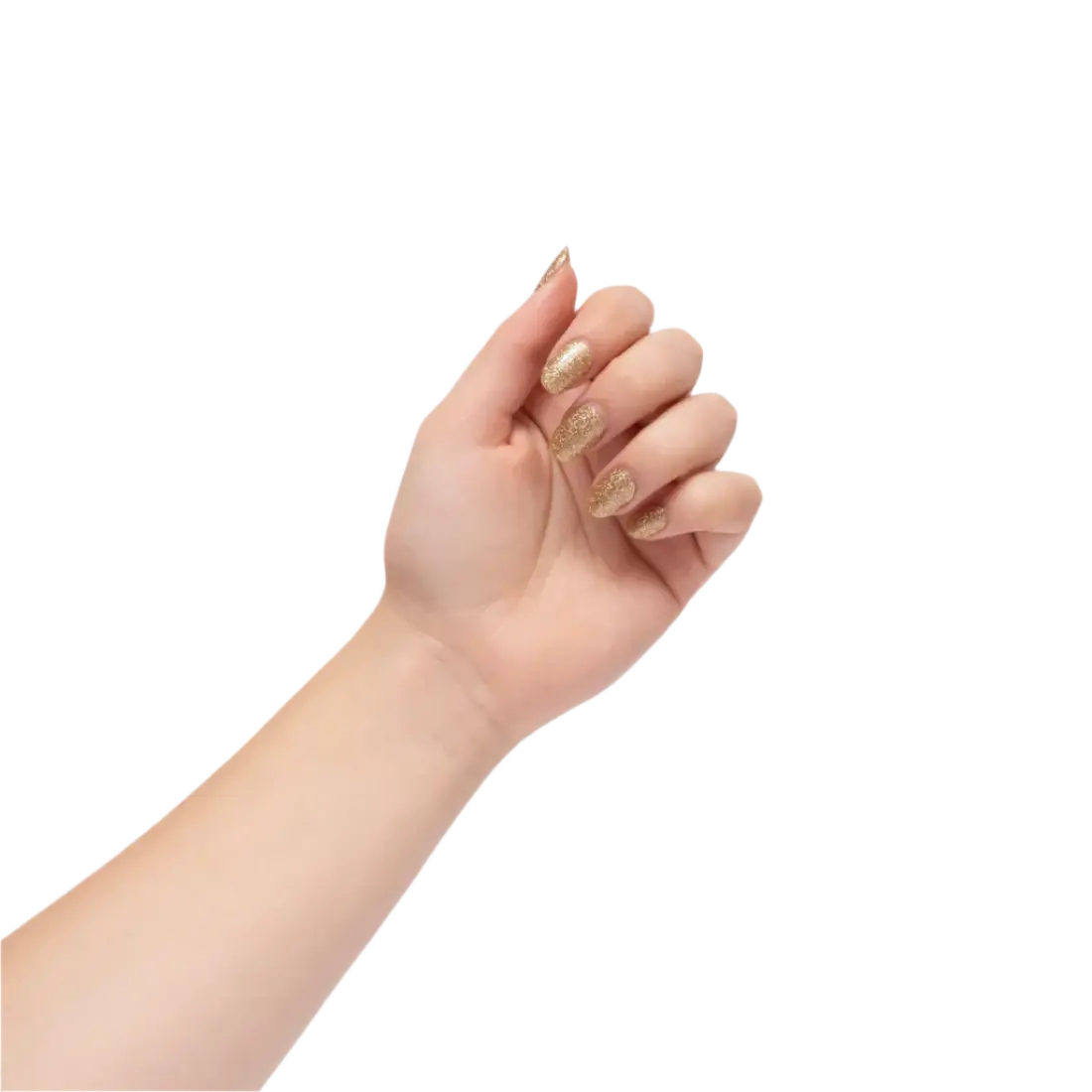 - geven je sprankelende gouden glitternagels in 15 minuten