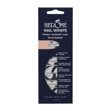 De Herôme Nail Wraps Noir Lines geven je nagels in no time een edgy, minimalistische look, perfect voor wie van strak en stijlvol houdt! Deze zwarte nail art wraps met grafische lijnen zorgen voor een flawless finish zonder geknoei of droogtijd. Binnen 15 minuten heb je salonwaardige nagels die tot wel twee weken blijven zitten met de juiste top coat.