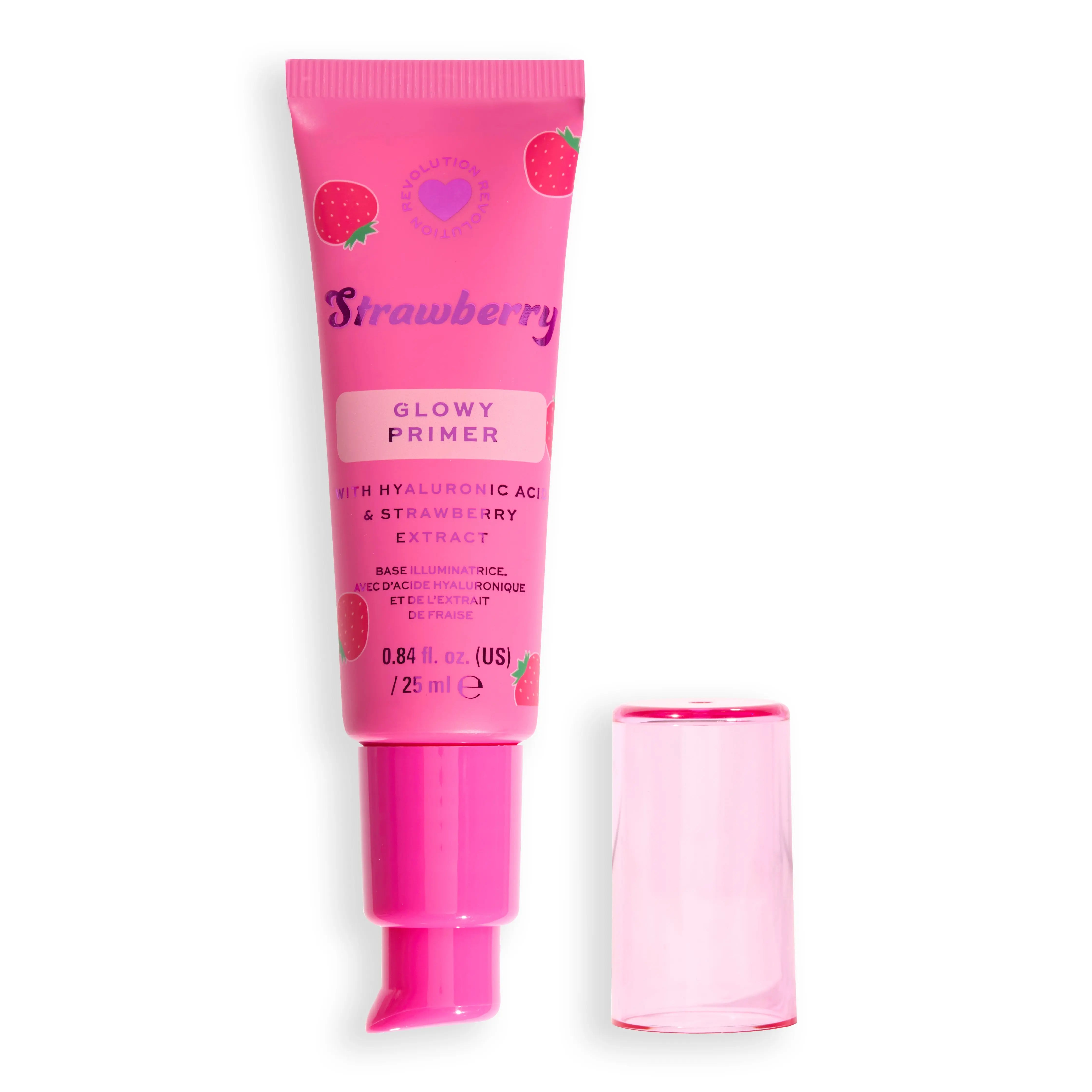 De I Heart Revolution Strawberry Glow Primer is jouw geheime wapen voor een juicy, stralende huid! Deze lichtgewicht primer met subtiele shimmer is doordrenkt met hyaluronzuur, vitamine C en aardbeienextract om je huid te hydrateren, op te frissen en een instant glow te geven.