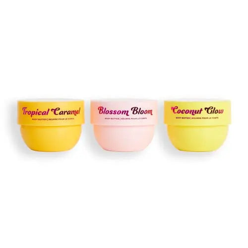 Tropical Caramel (Ingredients): Aqua (Water, Eau), Caprylic/capric Triglyceride, Cetearyl Alcohol,glycerin, Helianthus Annuus (Sunflower) Seed Oil, Butyrospermum Parkii (Shea) Butter, Palmitic Acid, Peg-100 Stearate, Stearic Acid, Parfum (Fragrance), Glyceryl Stearate, Phenoxyethanol, Acrylates Copolymer, Triethanolamine, Polysorbate 60, Carbomer, Ceteareth-25, Ethylhexylglycerin, Disodium Edta, Cocos Nucifera (Coconut) Oil, Caffeine, Cyclodextrin, Cocos Nucifera (Coconut) Fruit Extract, Benzyl Alcohol, Benzyl Salicylate, Coumarin, Limonene, Ci 19140 (Yellow 5), Ci 17200 (Red 33). Coconut Glow (Ingredients): Aqua (Water, Eau), Caprylic/capric Triglyceride, Cetearyl Alcohol, Glycerin, Helianthus Annuus (Sunflower) Seed Oil, Butyrospermum Parkii (Shea) Butter, Palmitic Acid, Peg-100 Stearate, Stearic Acid, Parfum (Fragrance), Glyceryl Stearate, Phenoxyethanol, Acrylates Copolymer, Triethanolamine, Polysorbate 60, Carbomer, Ceteareth-25, Synthetic Fluorphlogopite, Ethylhexylglycerin, Disodium Edta, Silica, Macadamia Ternifolia (Macadamia) Seed Oil, Euterpe Oleracea (Acai) Fruit Oil, Cocos Nucifera (Coconut) Oil, Triethoxycaprylylsilane, Tin Oxide, Benzyl Salicylate, Geraniol, Limonene, Linalool, Ci 77891 (Titanium Dioxide), Ci 19140 (Yellow 5), Ci 14700 (Red 4). Blossom Bloom (Ingredients): Aqua (Water, Eau), Caprylic/capric Triglyceride, Cetearyl Alcohol, Glycerin, Helianthus Annuus (Sunflower) Seed Oil, Butyrospermum Parkii (Shea) Butter, Palmitic Acid, Peg-100 Stearate, Stearic Acid, Parfum (Fragrance), Glyceryl Stearate, Phenoxyethanol, Acrylates Copolymer, Triethanolamine, Polysorbate 60, Carbomer, Ceteareth-25, Punica Granatum (Pomegranate) Fruit Extract, Ethylhexylglycerin, Disodium Edta, Sodium Hyaluronate, Vanilla Planifolia (Vanilla) Fruit Extract, Alpha-isomethyl Ionone, Benzyl Benzoate, Benzyl Salicylate, Limonene, Linalool, Ci 19140 (Yellow 5), Ci 17200 (Red 33).