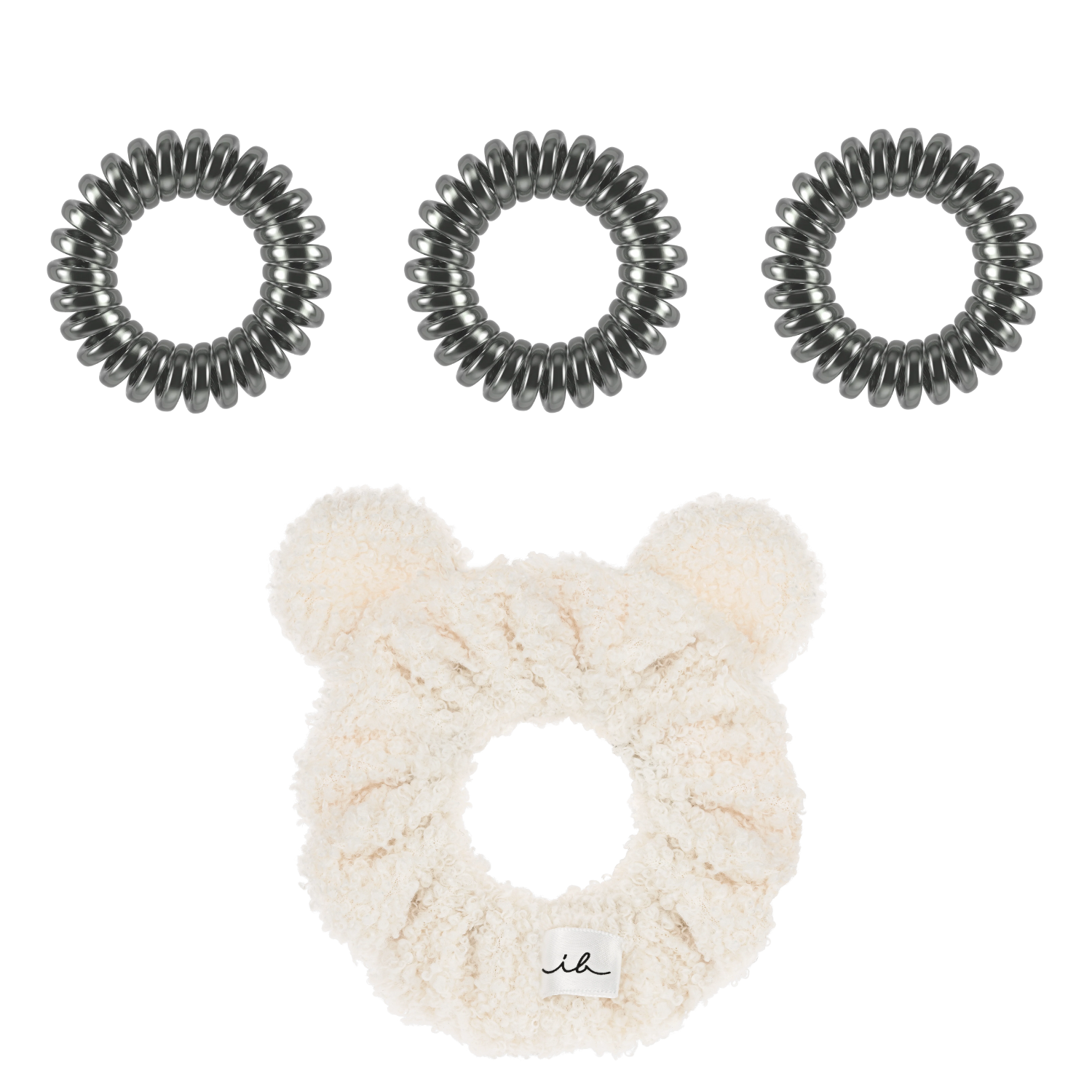 De Invisibobble Set Polar Cozyness is jouw nieuwe winter must-have voor cozy vibes én een flinke dosis cuteness! Deze schattige set bestaat uit drie donkergekleurde spiral haarelastiekjes én een fluffy witte scrunchie met... jawel, lieve poolbeer oortjes! Perfect om je haar mee vast te zetten zonder het te beschadigen, én om je outfit een speelse touch te geven.