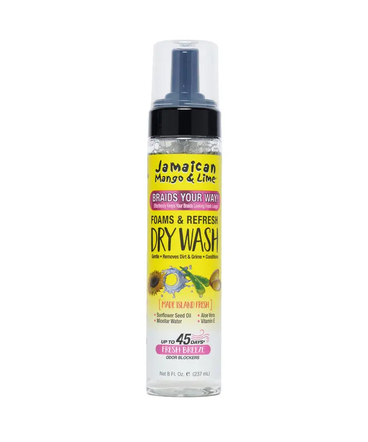 De Jamaican Mango & Lime Braid Cleansing Dry Shampoo is jouw go-to als je je braids, twists of locs wil opfrissen zonder ze te wassen. Deze droogshampoo in handige vloeibare vorm absorbeert overtollige olie en vuil, kalmeert de hoofdhuid en laat je haar heerlijk fris ruiken, ideaal tussen wasbeurten door of onderweg.